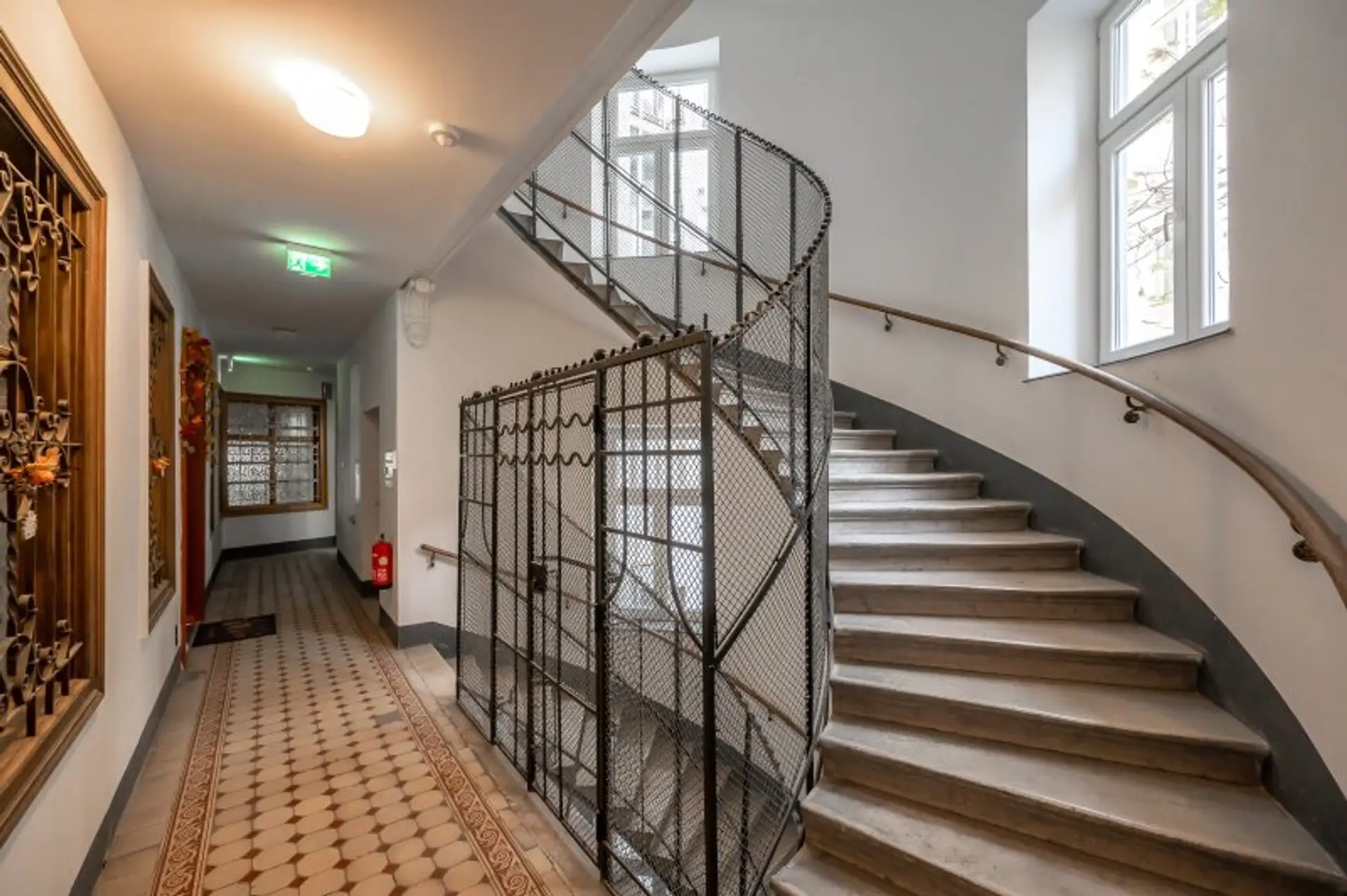 Die Wohnung befindet sich im 1. Stock (mit Aufzug) eines Altbaus.