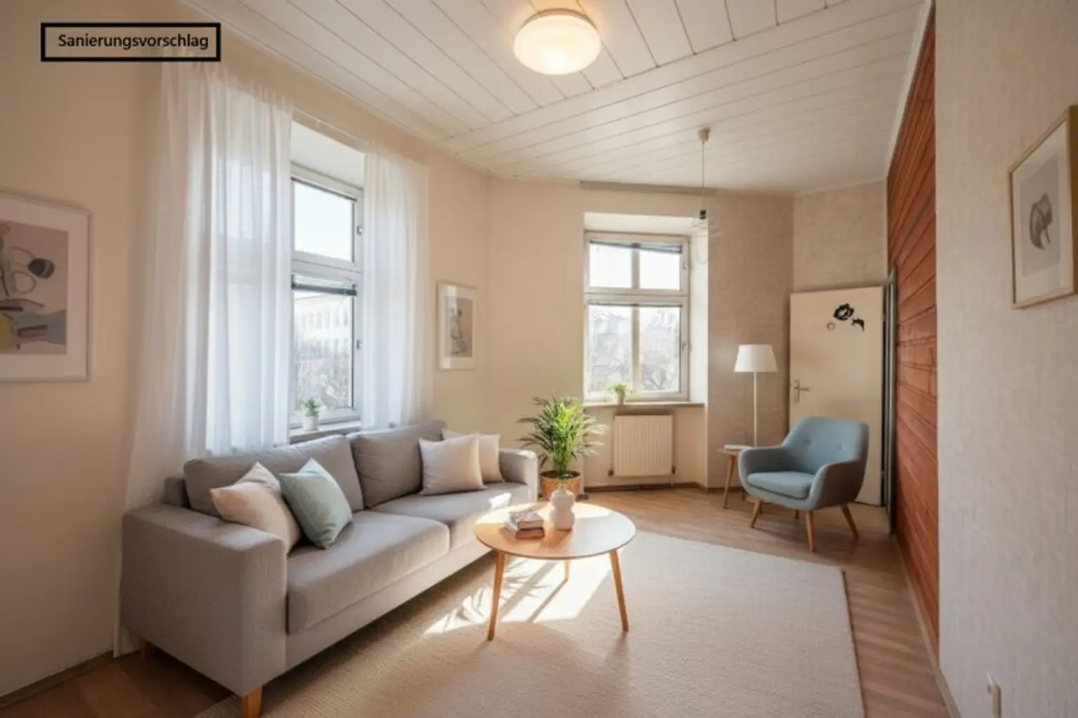 (Siehe Fotodokumentation und Grundriss. Siehe auch Beispielfoto nach einer möglichen Sanierung)