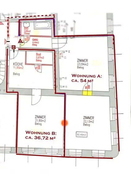 Wohnung A: ca. 54 m²