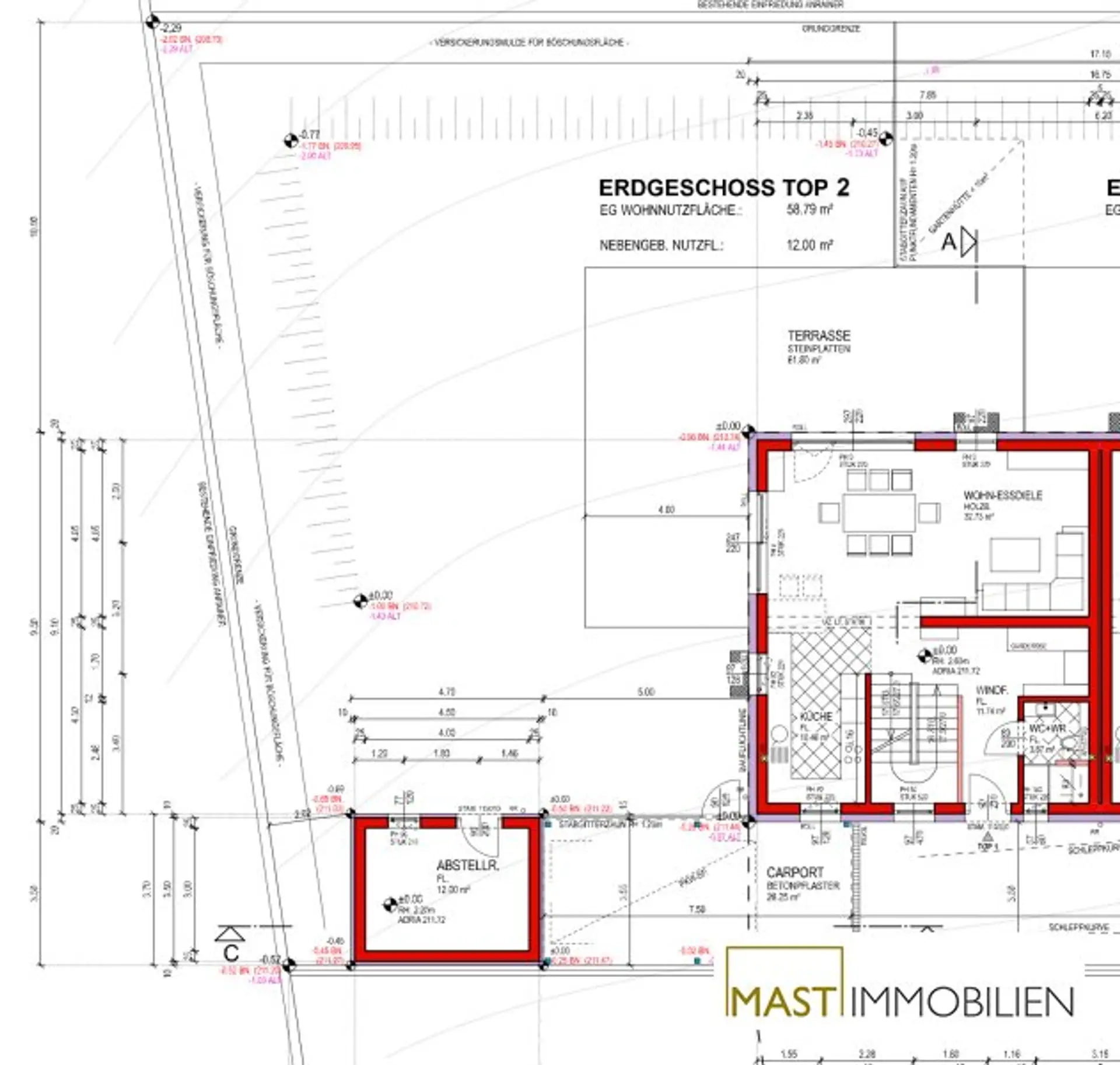 Das Doppelhaus wurde in Ziegel-Massivbauweise errichtet.