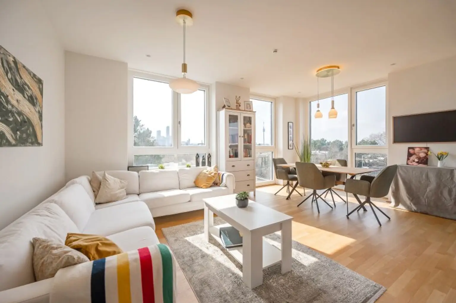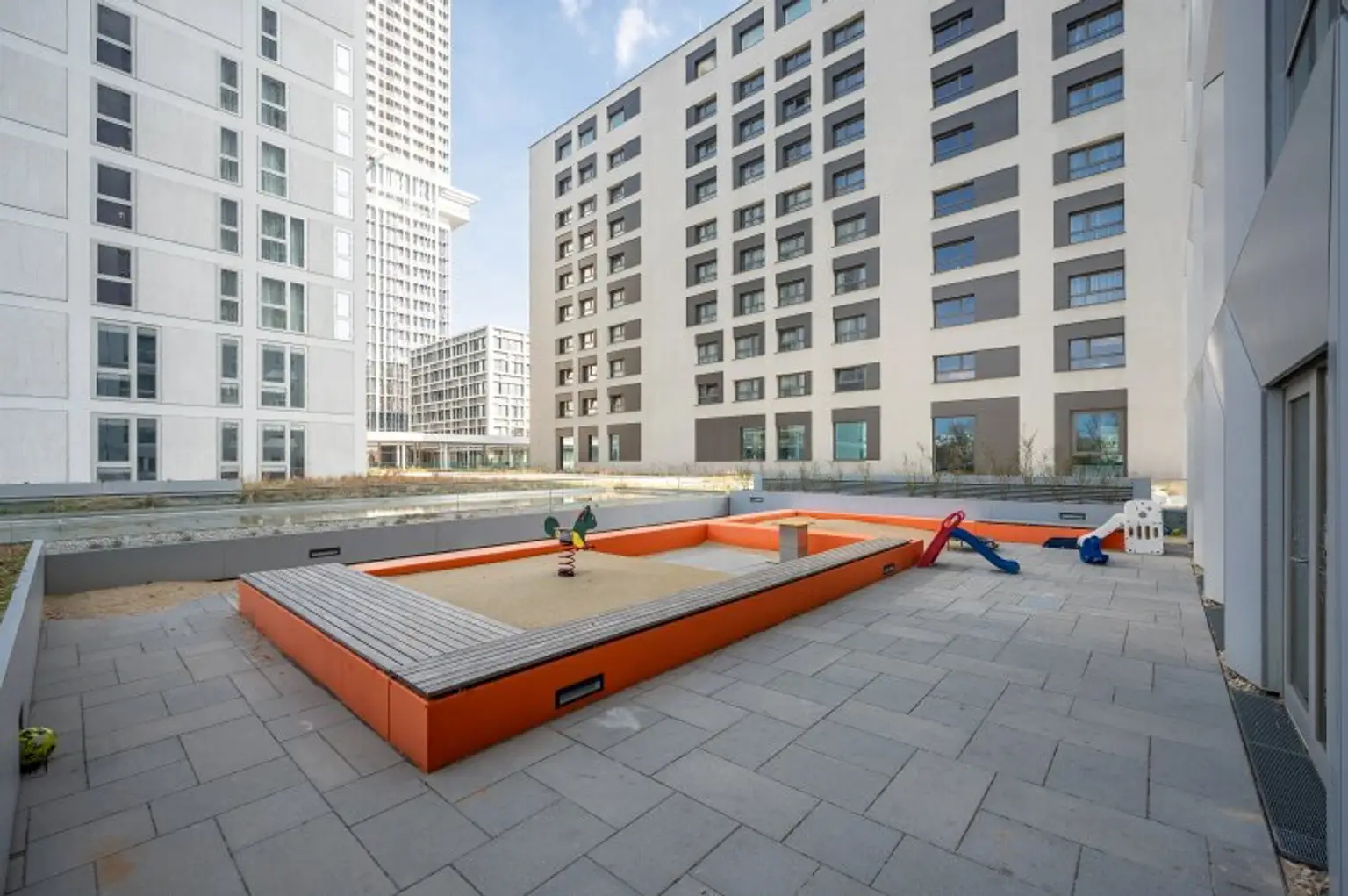 Die Wohnung liegt in einer begehrten Gegend des 22. Bezirks mit exzellenter Infrastruktur und internationalen Einrichtungen.