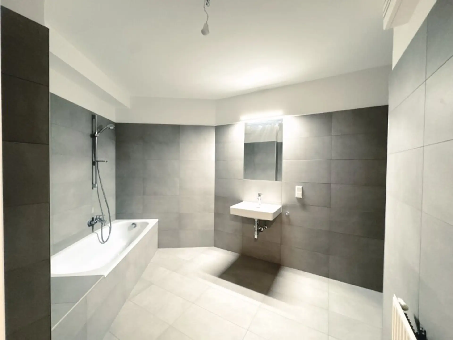 * Badezimmer mit Badewanne und Waschmaschinenanschluss