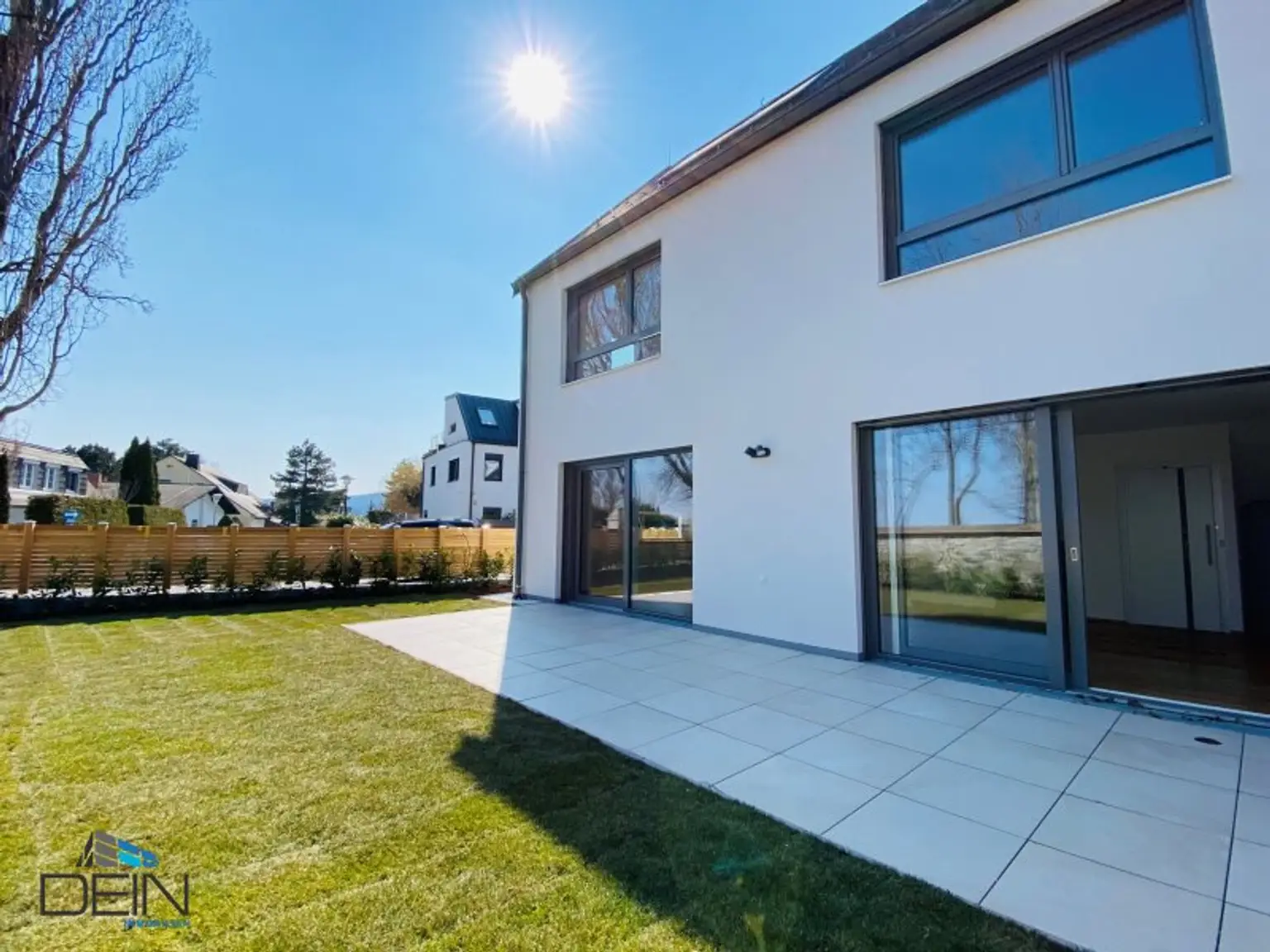 In den Wohn- und Schlafräumen wurden hochwertige Eichenparkettböden verlegt. Die Nassräume und der Keller (mit Fußbodenheizung) sind mit qualitativen Keramikbelägen verfliest worden. Die Fußbodenheizung wird mittels einer Luftwärmepumpe betrieben. In jedem Aufenthaltsraum sind Klimaanlagen installiert worden. Die Fenster (exkl. Dachflächenfenster) verfügen über eine elektrische Beschattung. Im Garten wurde ein Rollrasen verlegt. Jedem Haus sind zwei PKW-Stellplätze zugewiesen.