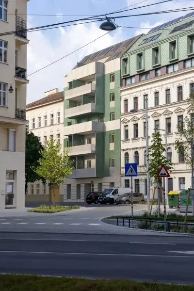 Die Wohnung befindet sich im 5. Stock (Neubau) mit Lift eines in Projektierung befindlichen Altbaus. EG bis 2. Stock sind generalsanierte Altbauwohnungen, ab dem 3. Stock handelt es sich um neugeschaffene Einheiten.