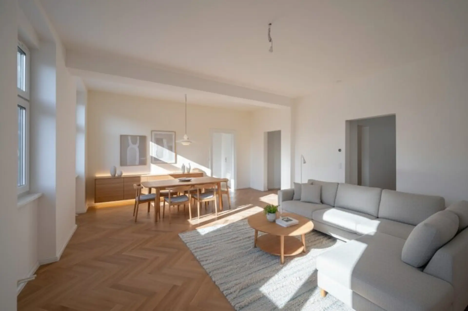Die Wohnung befindet sich im 3. Obergeschoss eines gepflegten Altbaus und ist bequem über einen Lift erreichbar. Der typische Altbaucharme des Hauses schafft eine behagliche Atmosphäre und unterstreicht die historische Architektur.