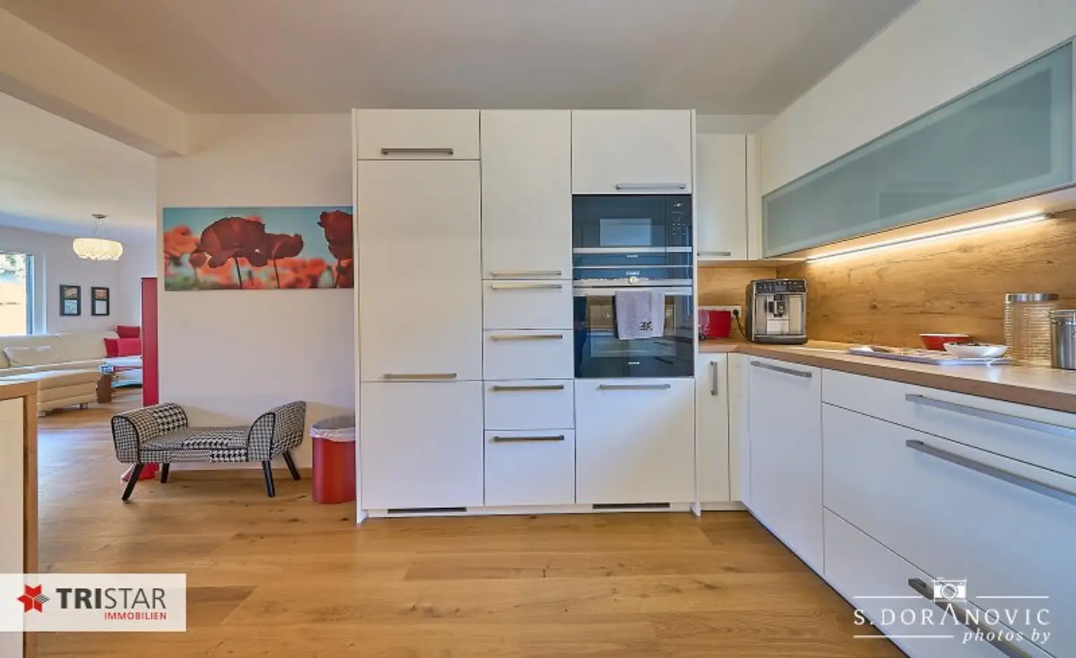 * Wohnküche mit ca. 45,50 m² und mit komplett ausgestattete Dank Küche mit hochwertigen Siemens Geräten.