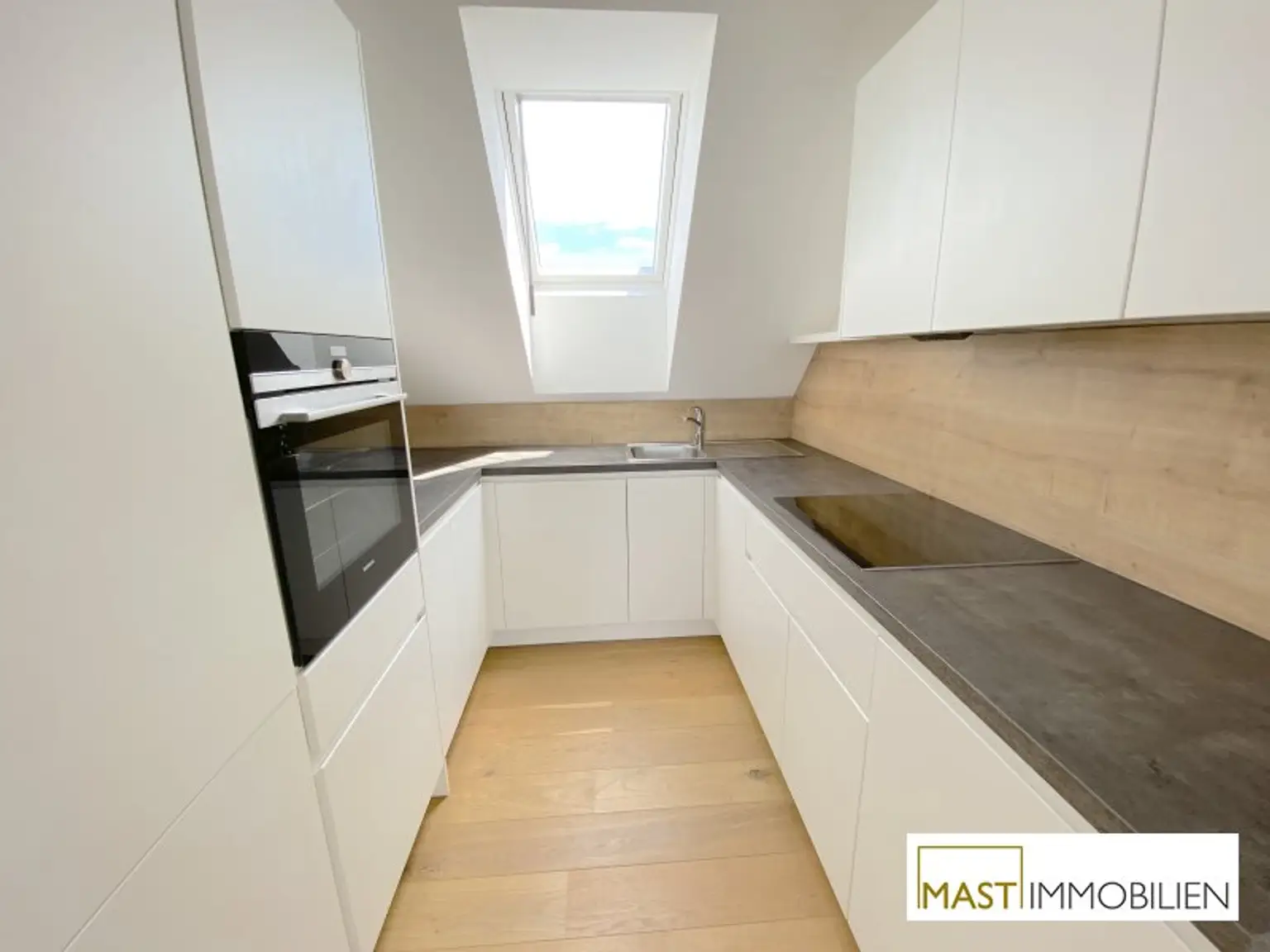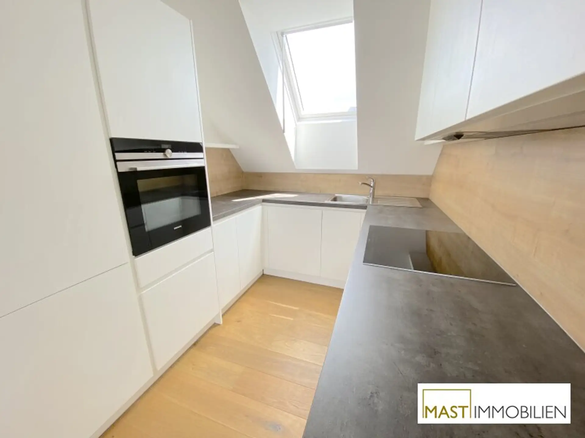 moderne, grifflose, maßgeschneiderte Einbauküche vom Tischler ausgestattet mit hochwertigen Geräten von Siemens