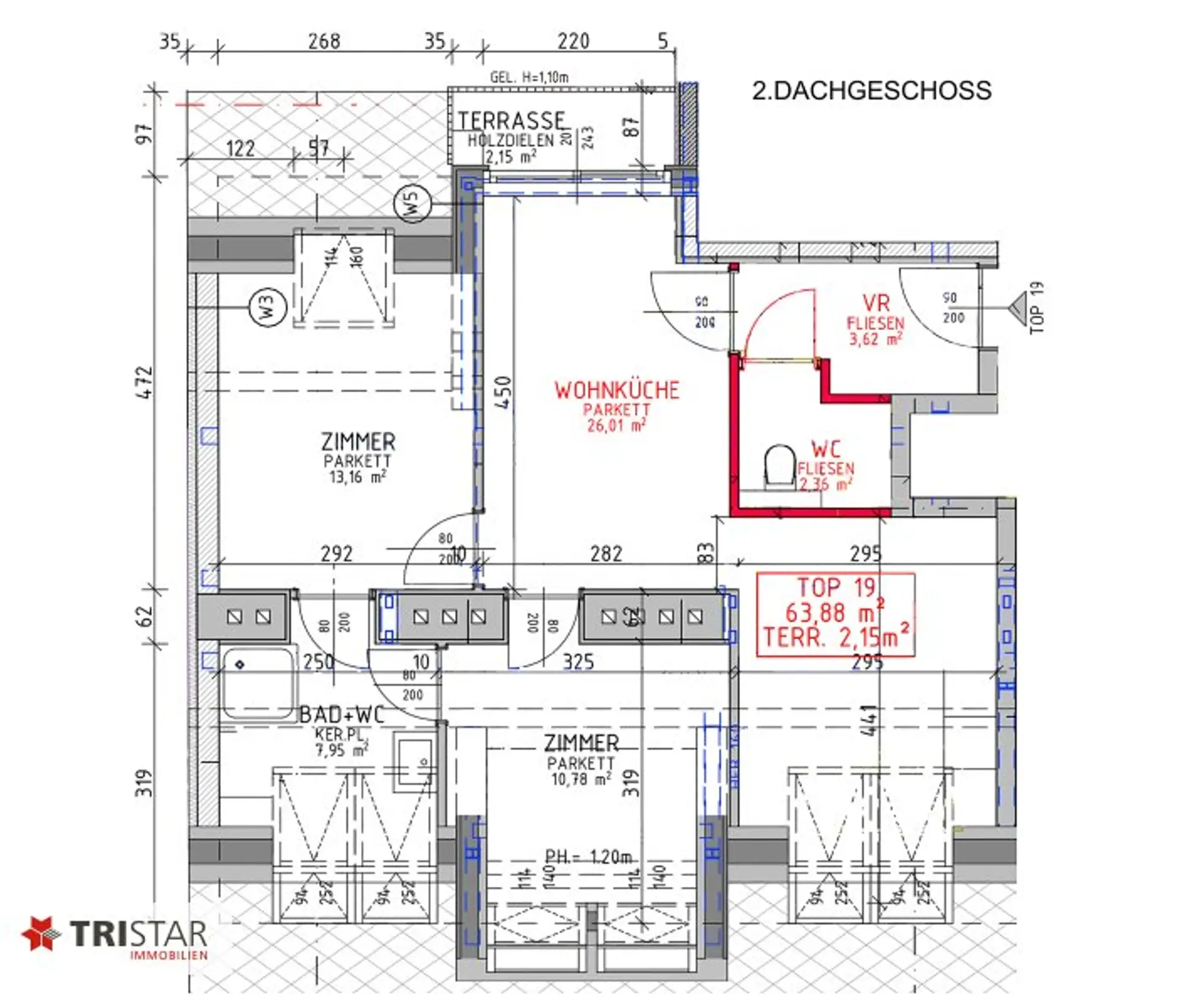 • DG 19 – 3 Zimmer | ca. 63,19 m² WNFL + Terrasse ca. 2,15 m² | Kaufpreis: EUR 467.000 - Schlüsselfertig!