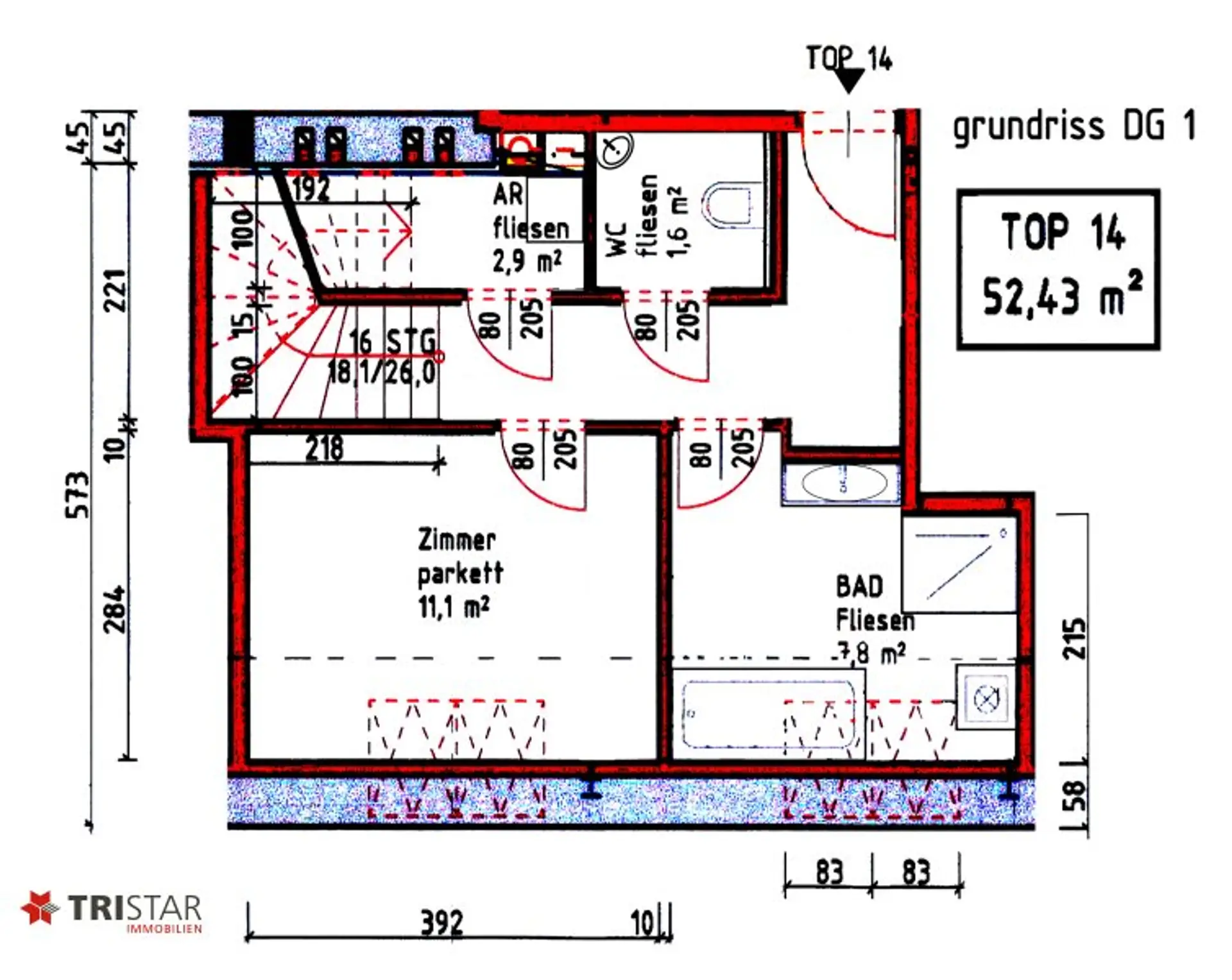 TOP 11: 3 Zimmer, Wohnfläche: ca. 78,54 m², Terrasse: ca. 7,40 m²,