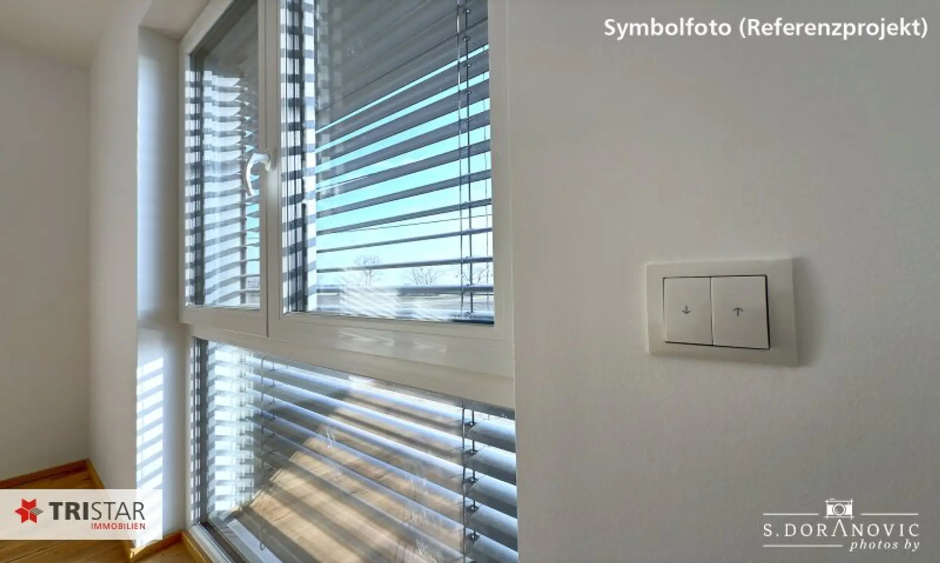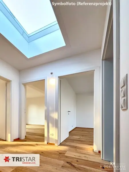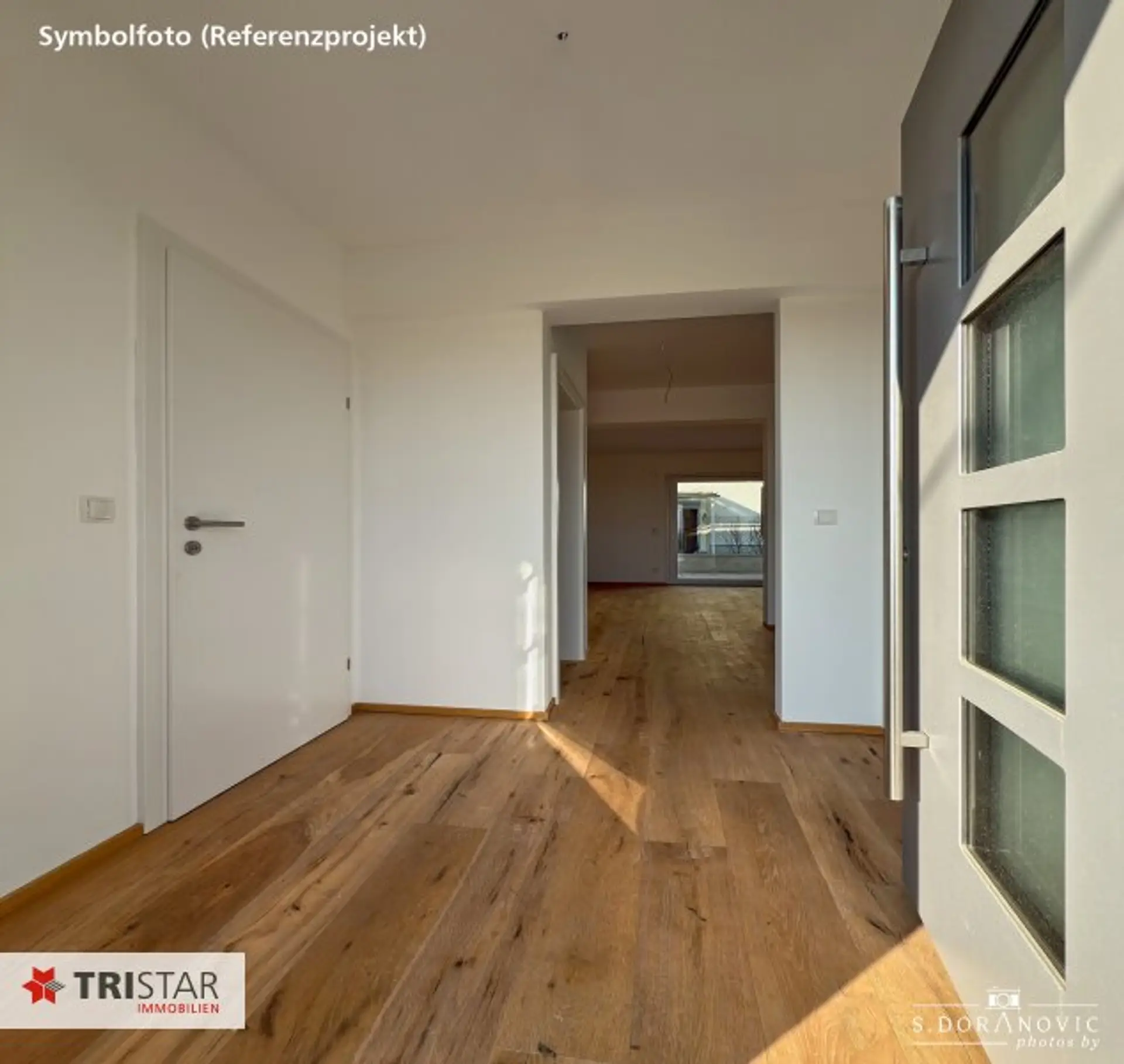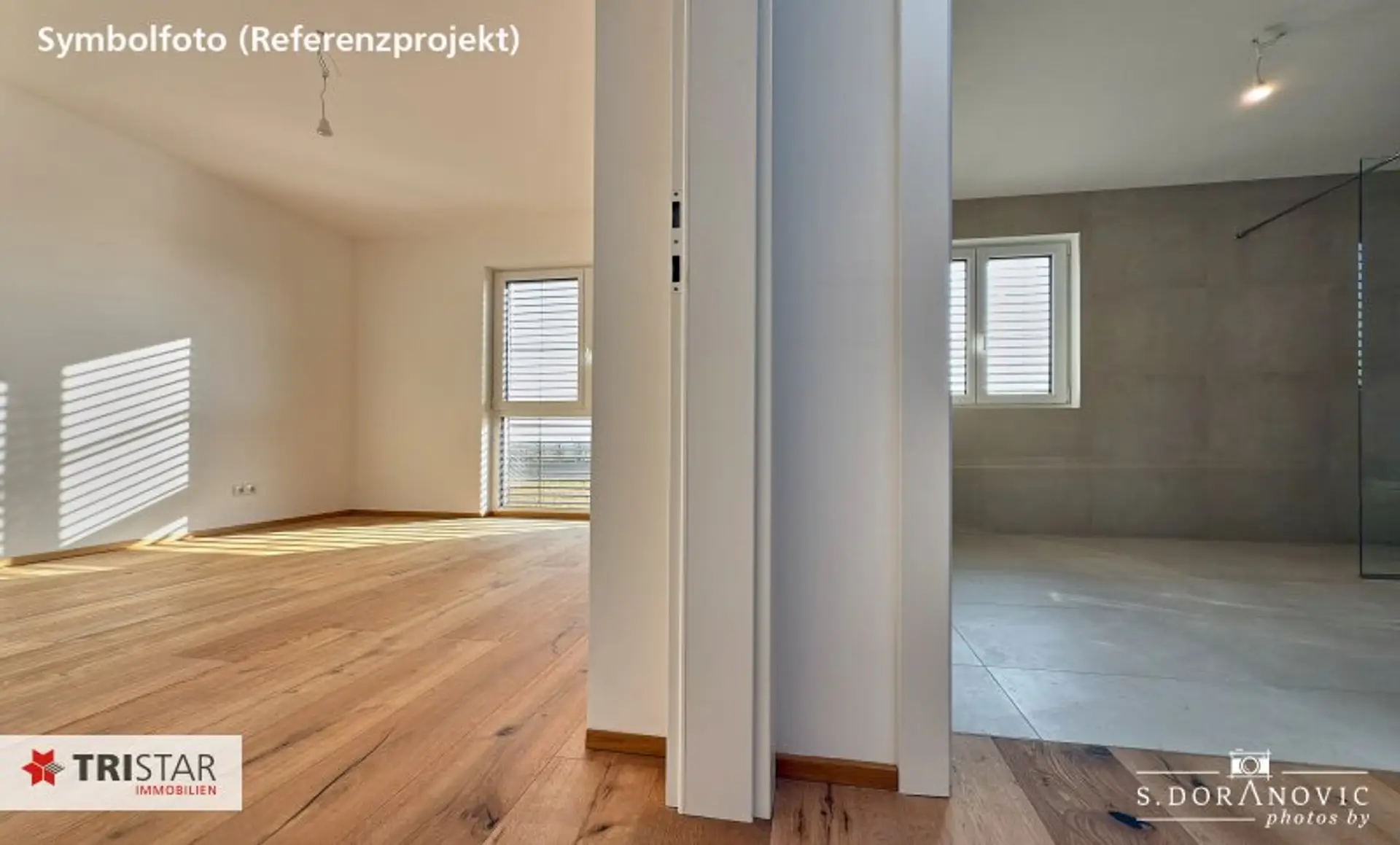 Die Fotos sind Symbolfotos (Referenzprojekt) aus einem bereits realisierten und verkauften Projekt des Bauträgers und dienen dazu, den schlüsselfertigen Zustand (ohne Küche) besser einschätzen zu können.