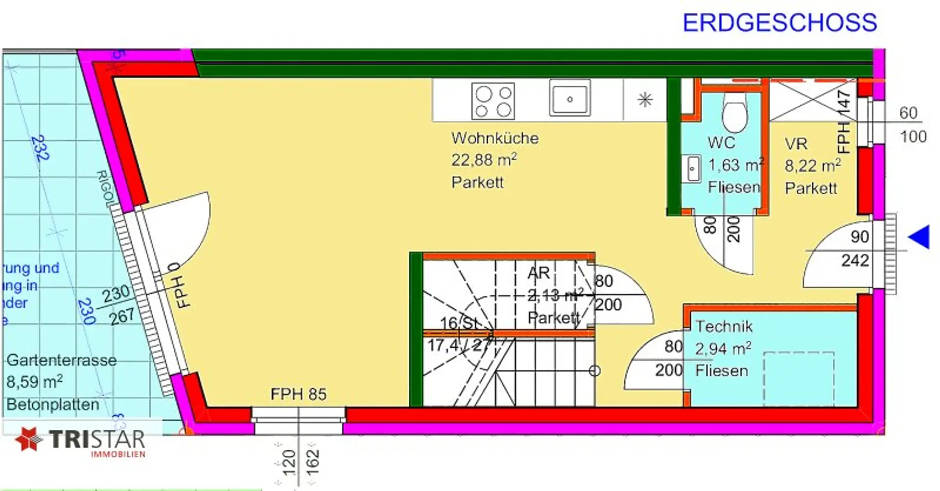 WNFL (4 Zimmer+Home Office) ca. 99 m² + GARTEN ca. 41 m2 + TERRASSE ca. 16,67 m2 + 2 PKW Stellplätze ca. 25,50 m² = EUR 479.000,- SCHLÜSSELFERTIG