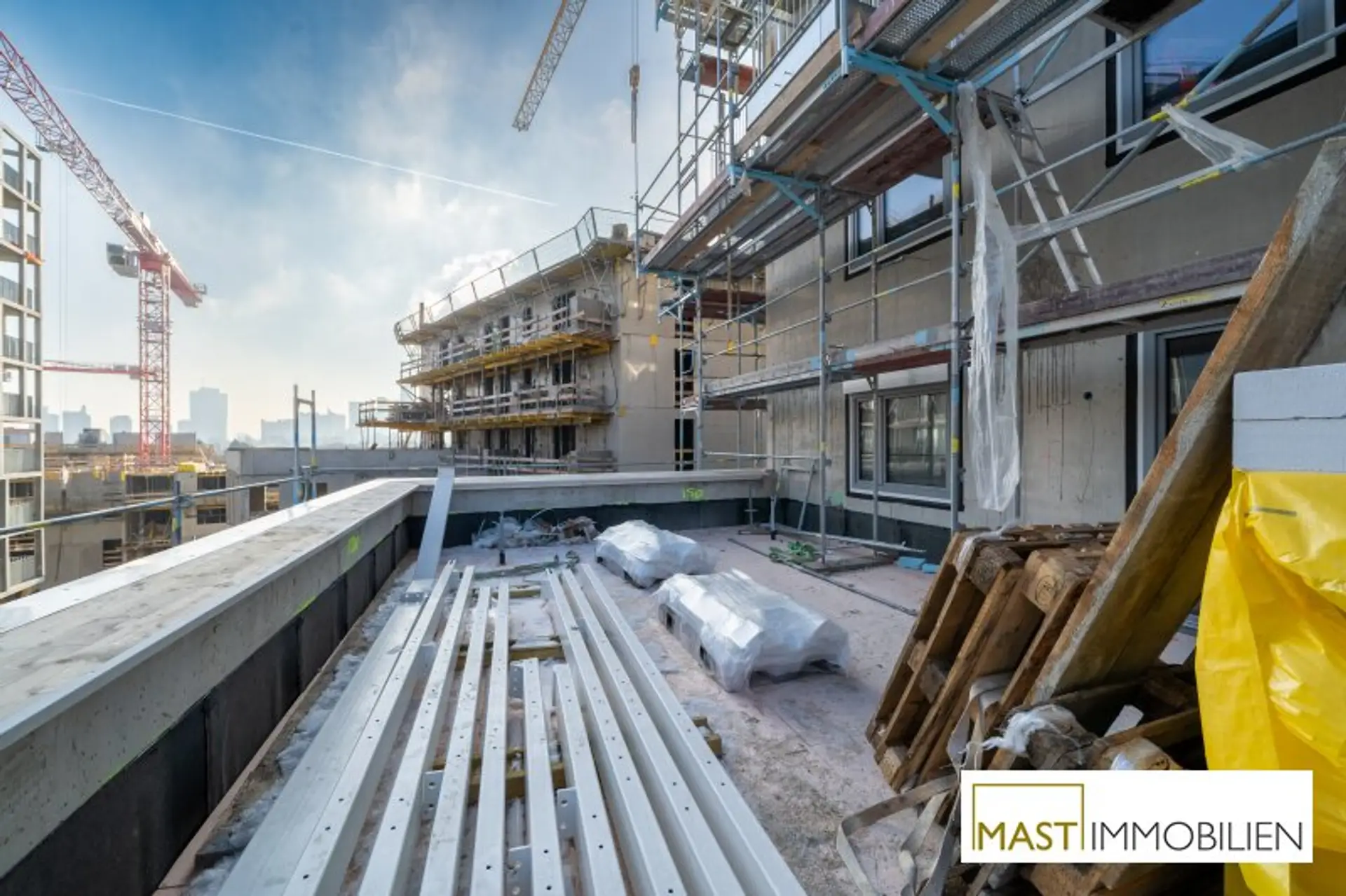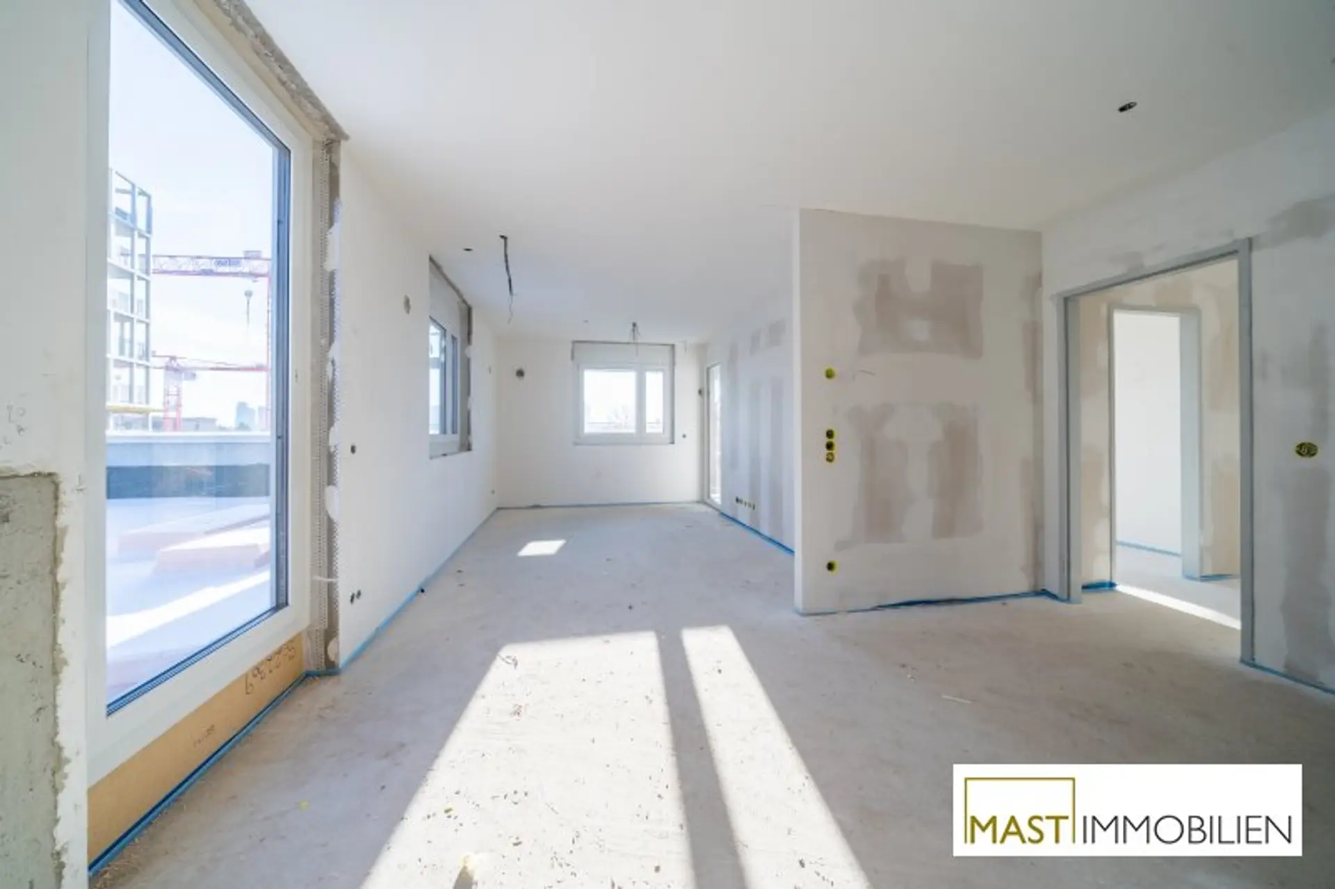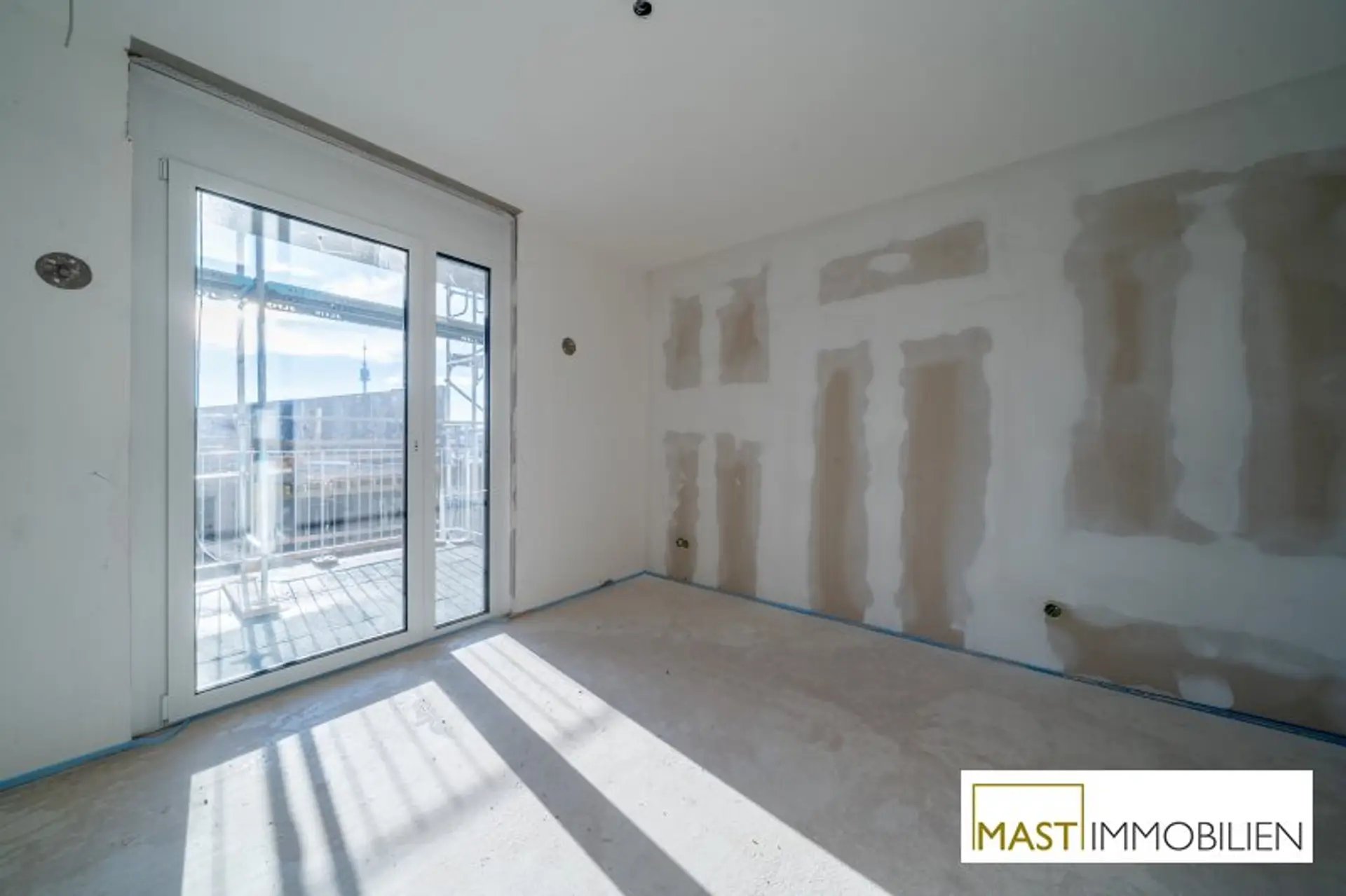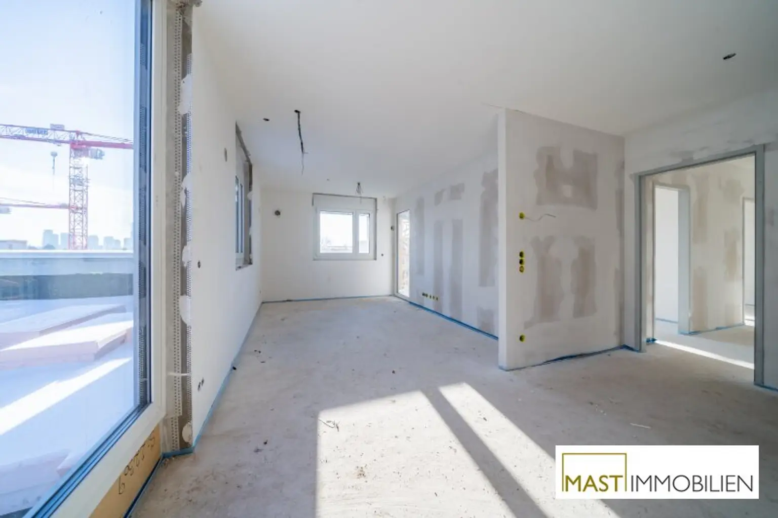 Die Wohnung befindet sich im 3. Liftstock und verfügt über 65,69 m² Wohnfläche + einen 7,66 m² großen Dachgarten + eine 18,46 m² große Terrasse + eine 23,05 große südlich ausgerichtete Loggia/Balkon.