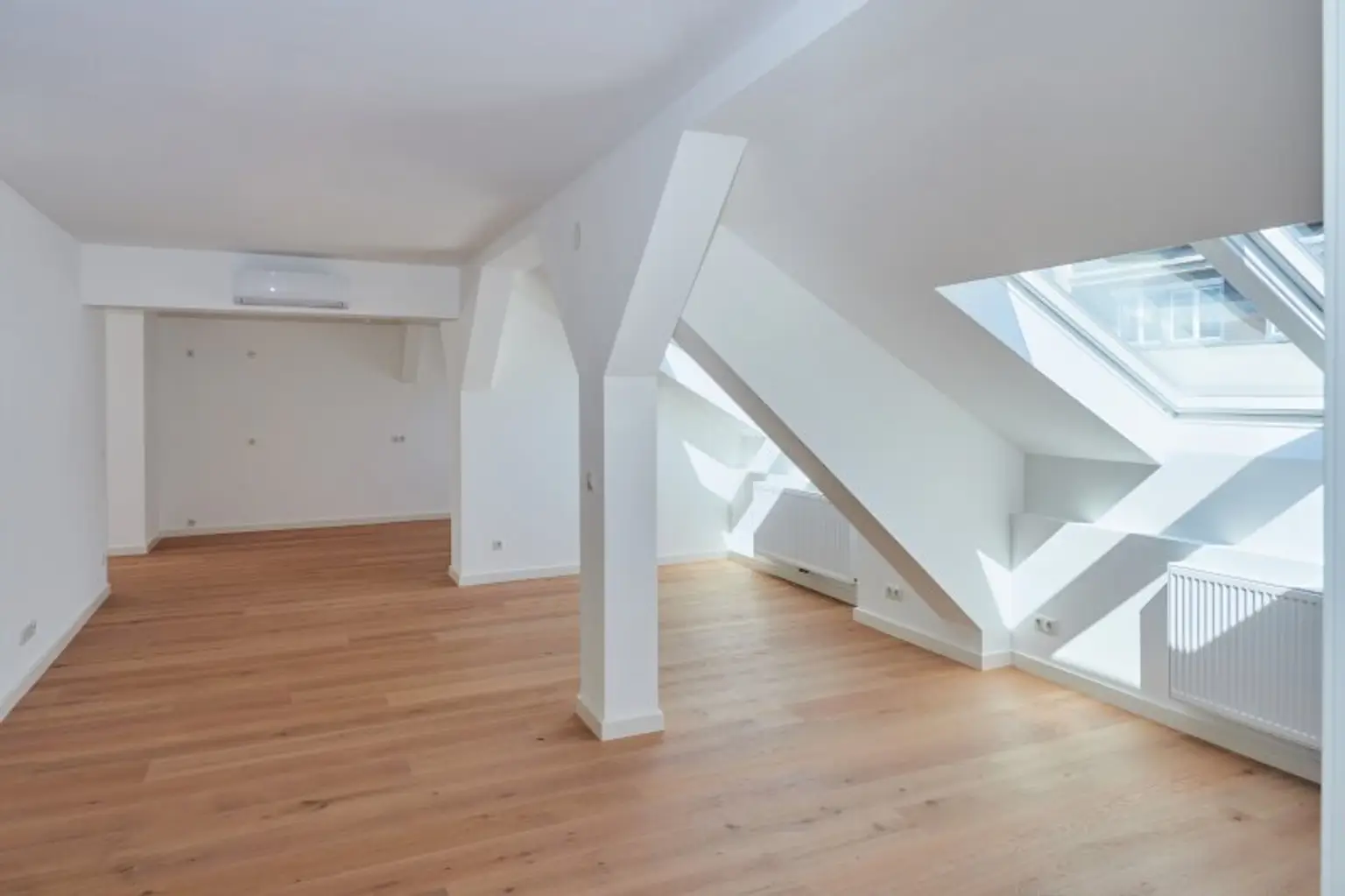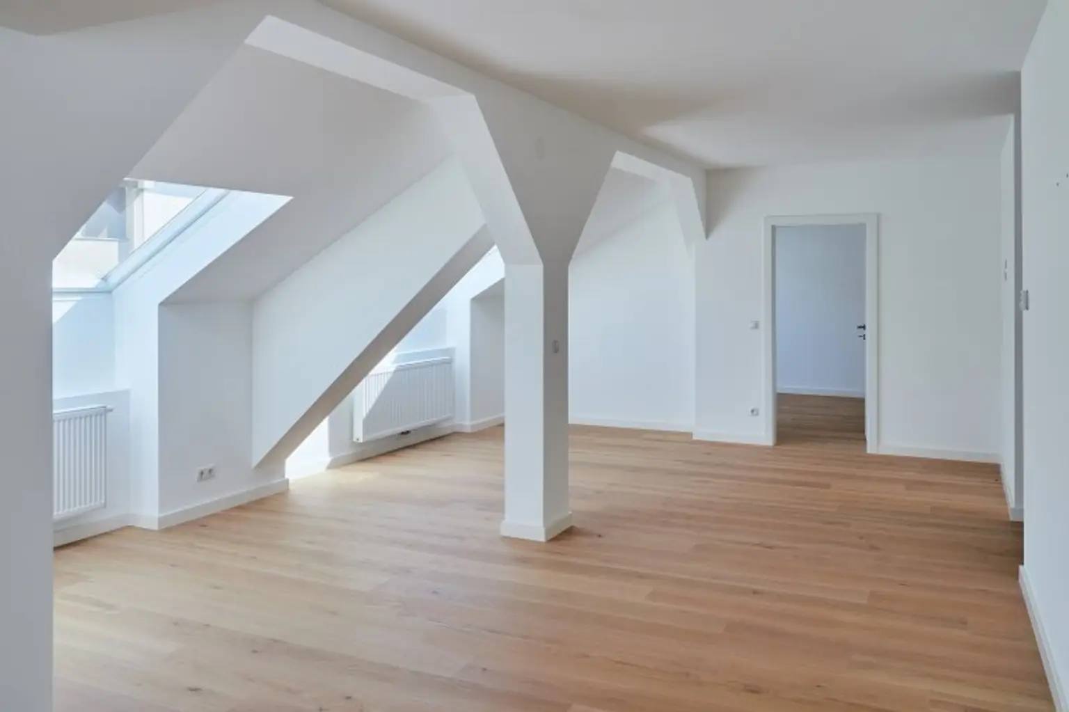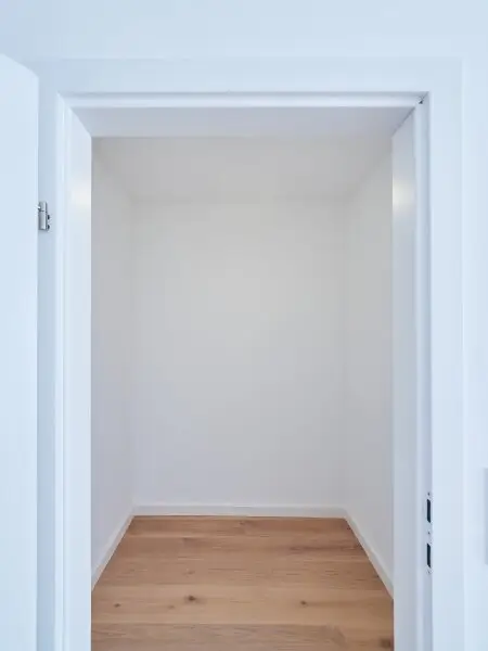 Die gut durchdachte Raumaufteilung und Raumhöhe bietet ausreichend Platz für integrierte Stauraummöglichkeiten.