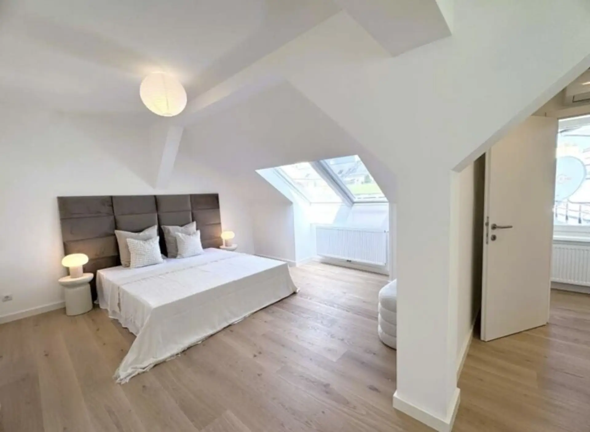 Die gut durchdachte Raumaufteilung und Raumhöhe bietet ausreichend Platz für integrierte Stauraummöglichkeiten.