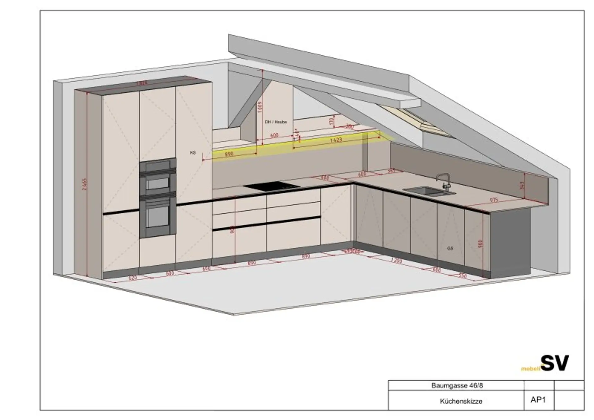Die gut durchdachte Raumaufteilung und Raumhöhe bietet ausreichend Platz für integrierte Stauraummöglichkeiten.