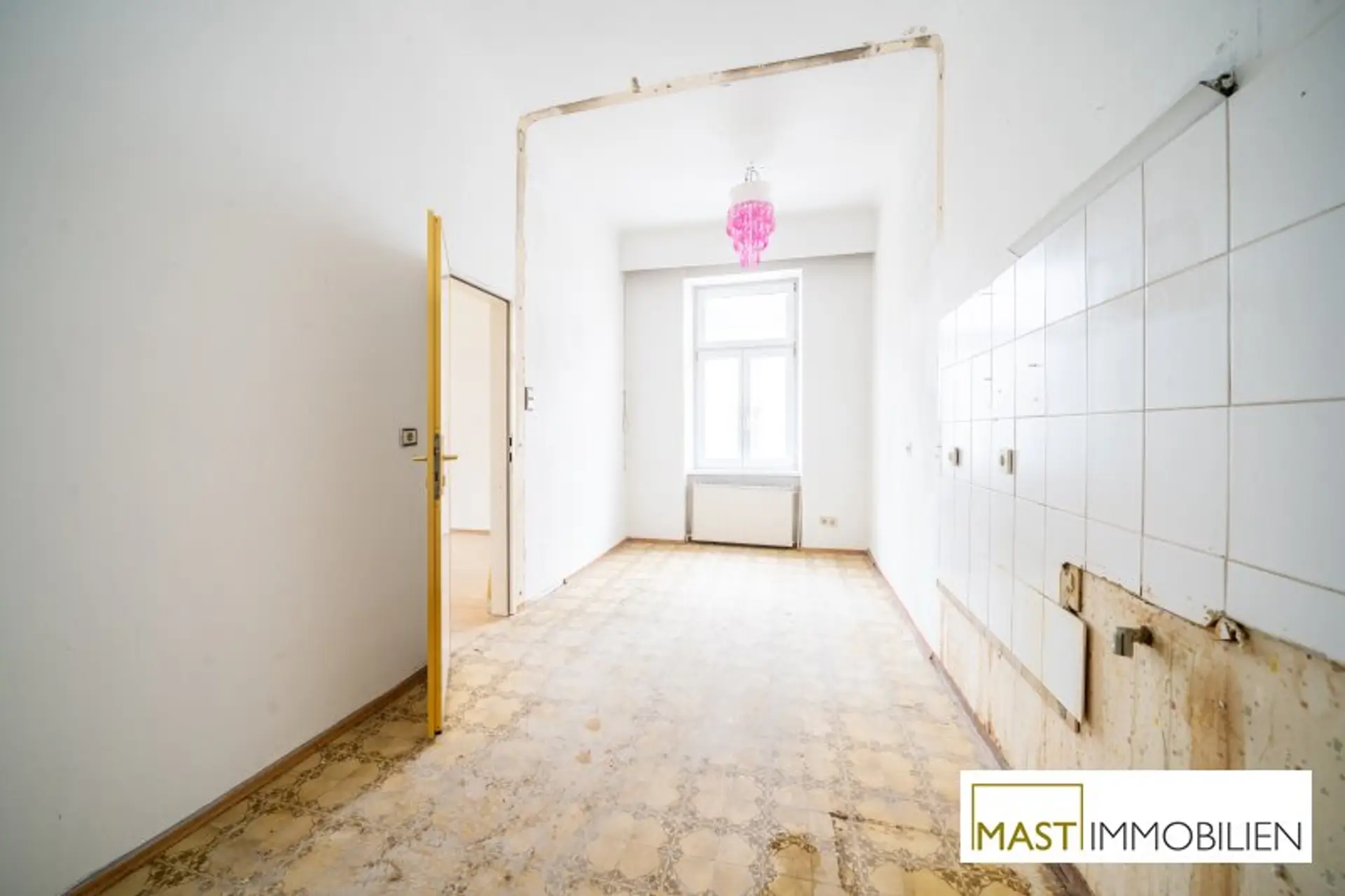 Bei der angebotenen Wohnung handelt es sich um eine renovierungsbedürftige 2-Zimmer Wohnung im 1. Obergeschoss mit insgesamt 60 m2 Wohnfläche. Die Wohnung verfügt aktuell über ein Wohnzimmer, eine separate Küche und ein Schlafzimmer. Mit etwas handwerklichem Geschick, kann man diese Wohnung zu einer kompakten 3-Zimmer-Wohnung umbauen.