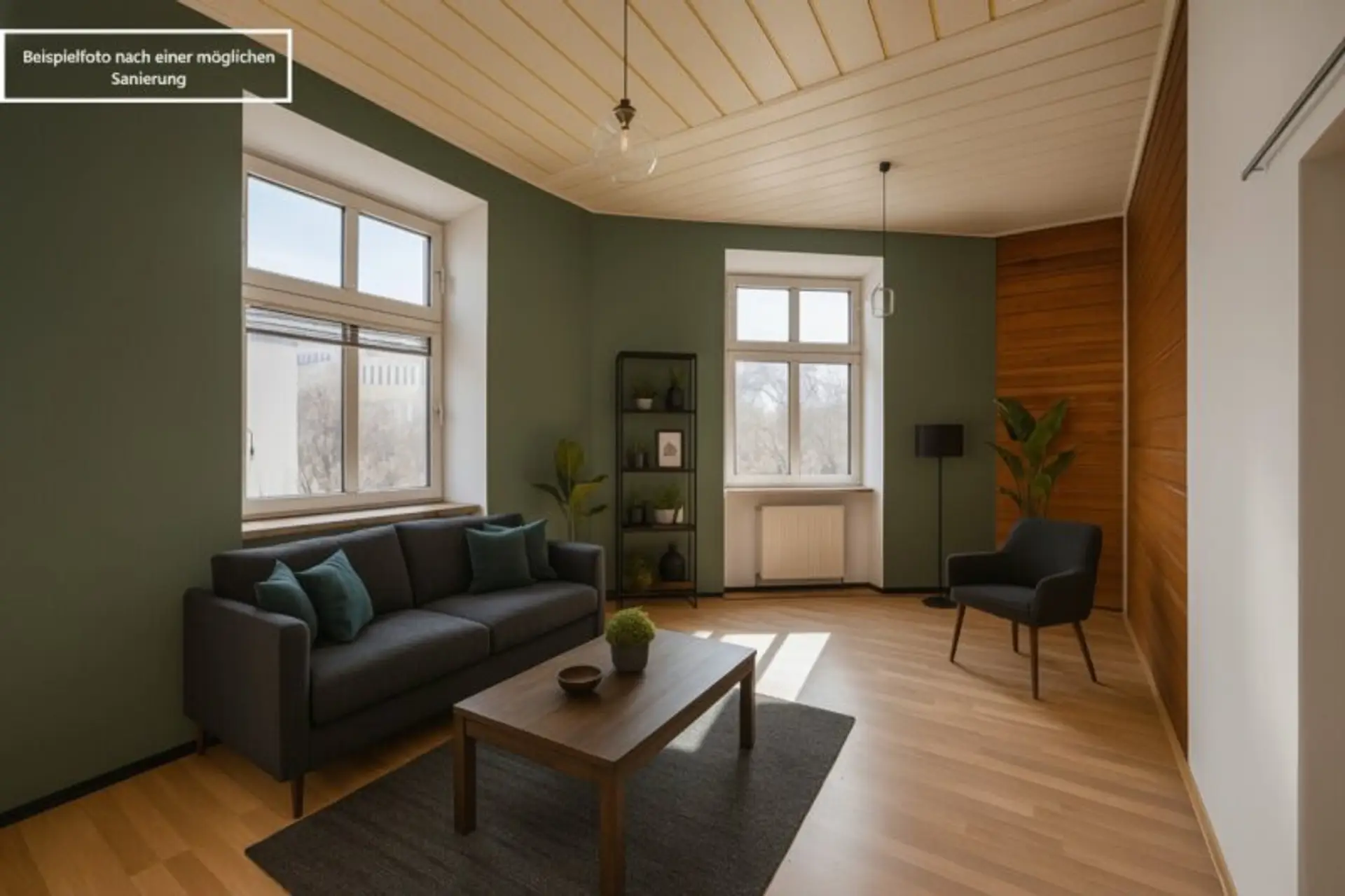 (Siehe Fotodokumentation und Grundriss. Siehe auch Beispielfoto nach einer möglichen Sanierung)