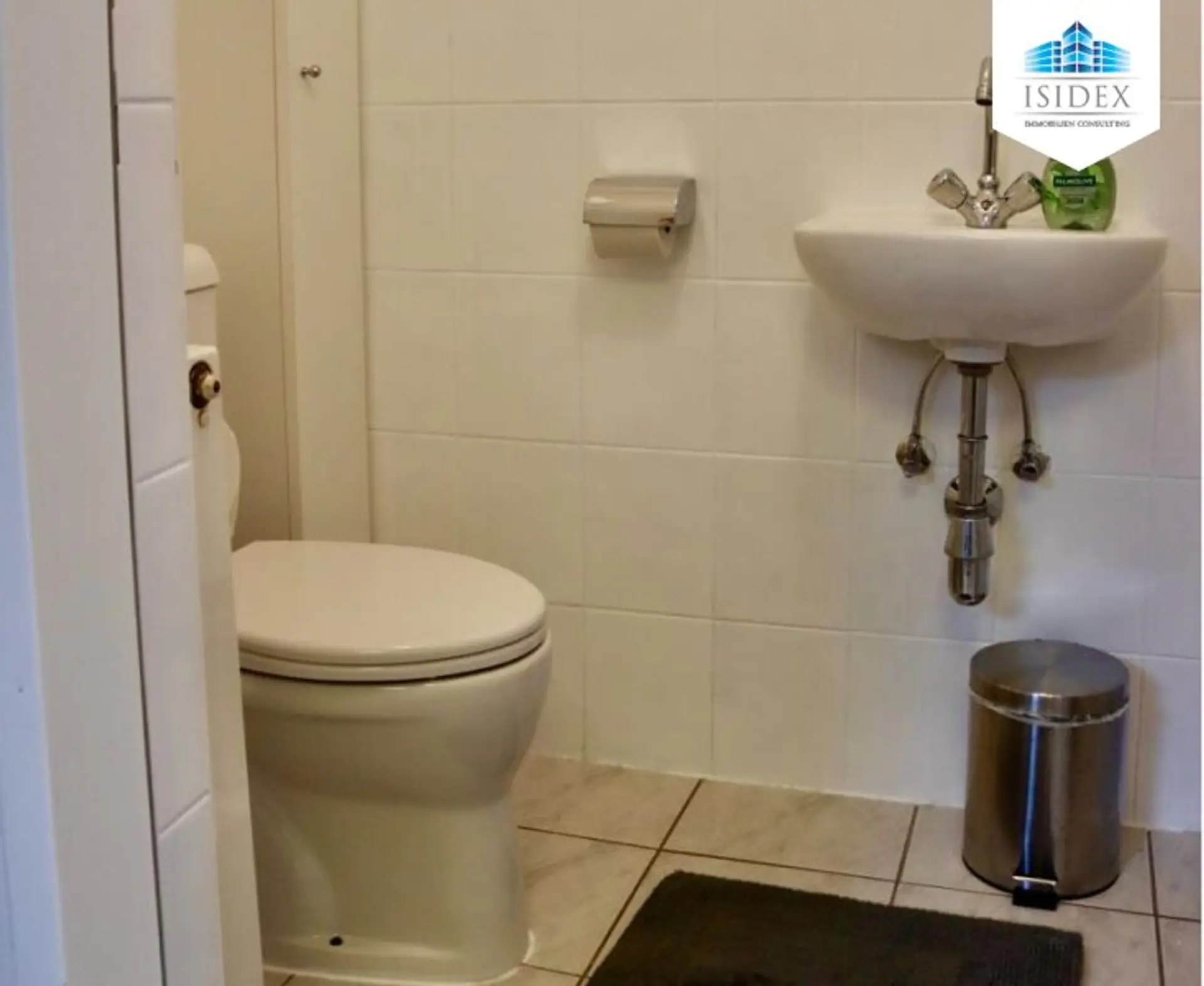 * Badezimmer mit Dusche, Badewanne und Waschmaschine