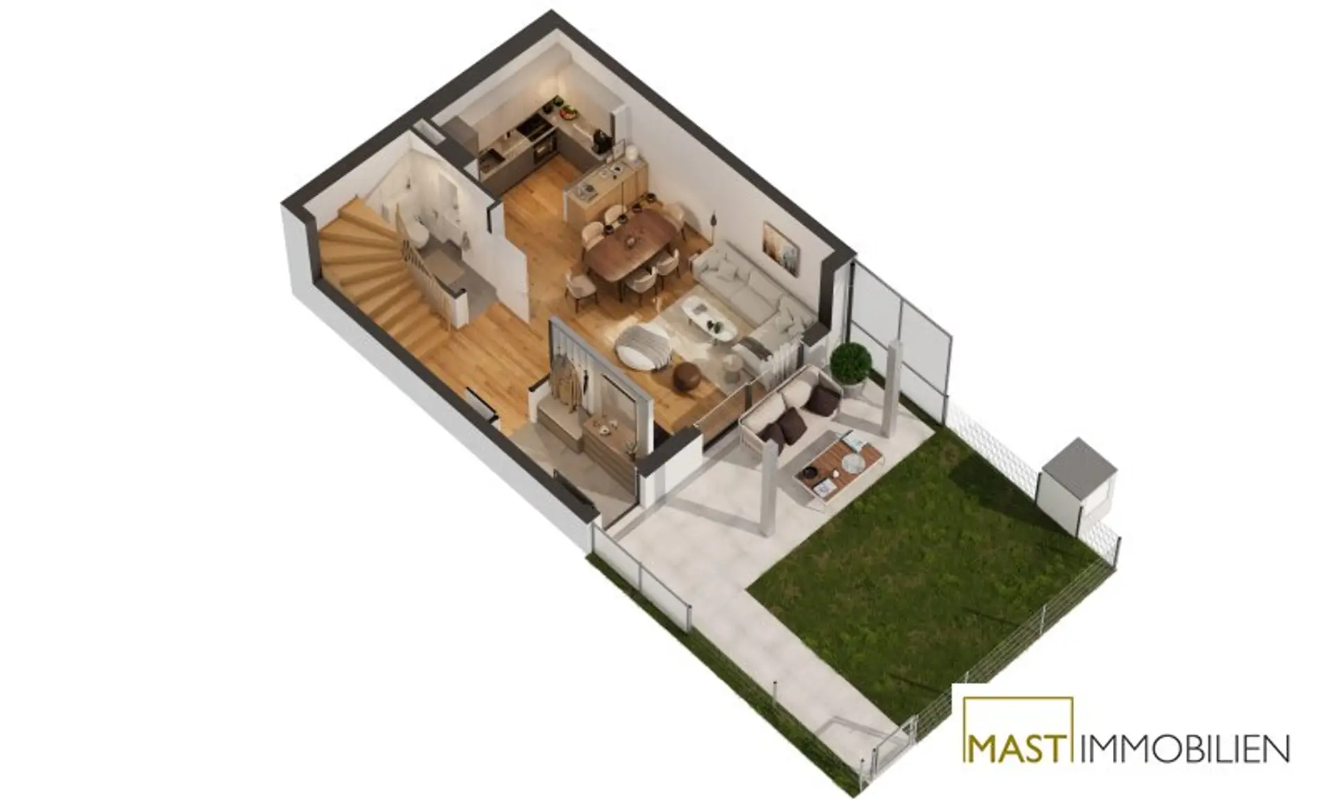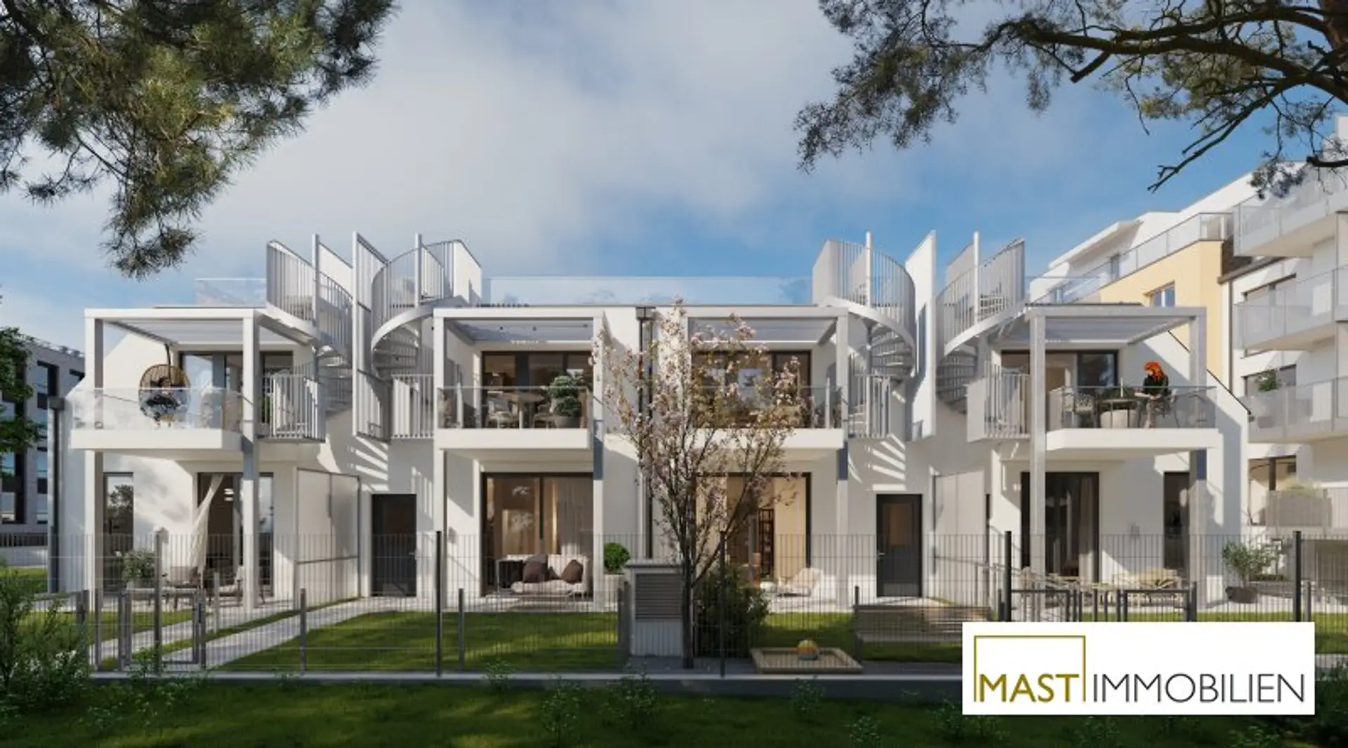 Das Stadthaus befindet sich im ruhigen Straßentrakt und verfügt über 86,31 m² Wohnfläche + eine 35,22 m² große Terrasse/Garten + ein 6,95 m² großer Balkon + eine 39,18 m² große Dachterrasse.