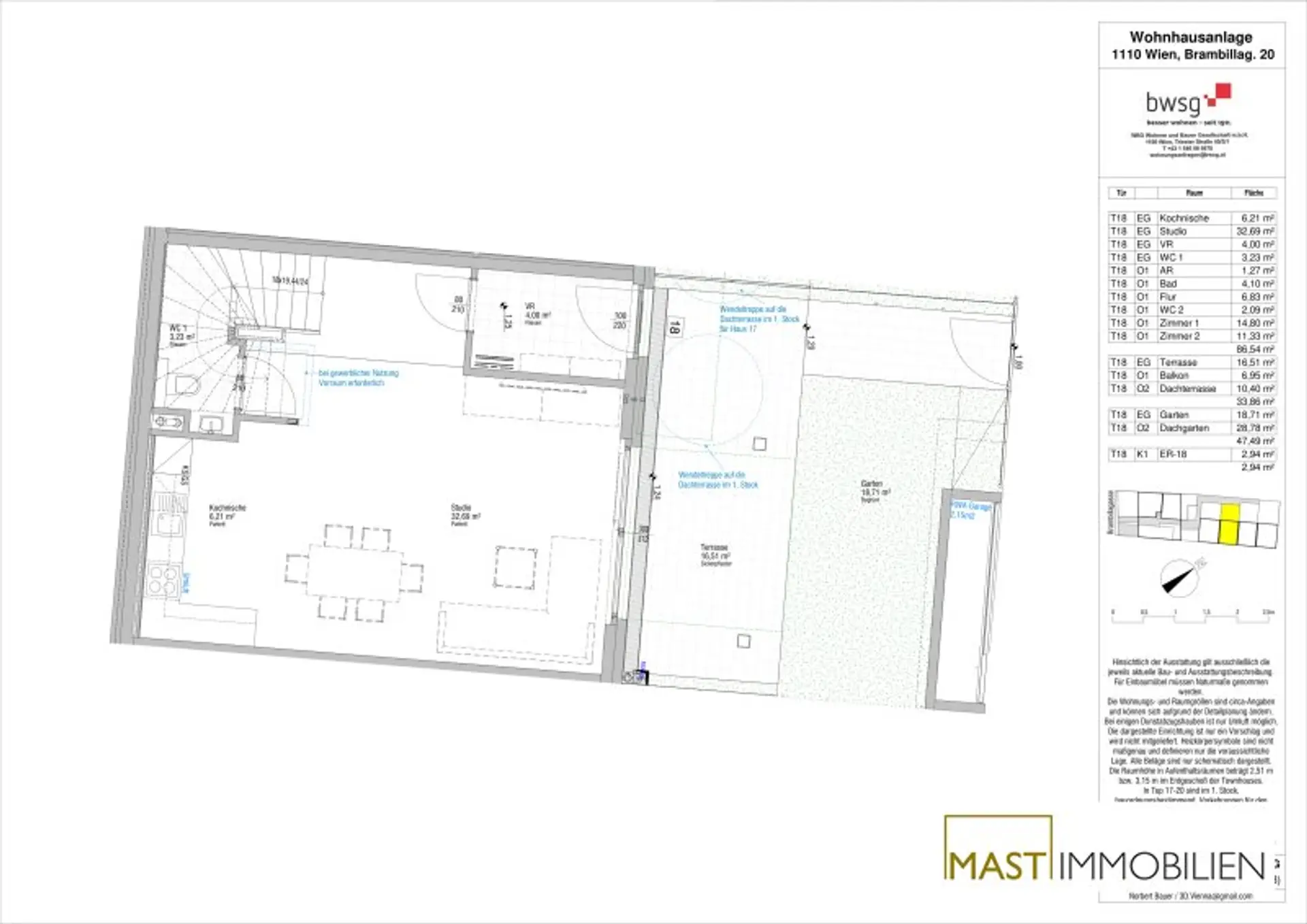 Das Stadthaus befindet sich im ruhigen Straßentrakt und verfügt über 86,54 m² Wohnfläche + eine 35,22 m² große Terrasse/Garten + ein 6,95 m² großer Balkon + eine 39,18 m² große Dachterrasse.