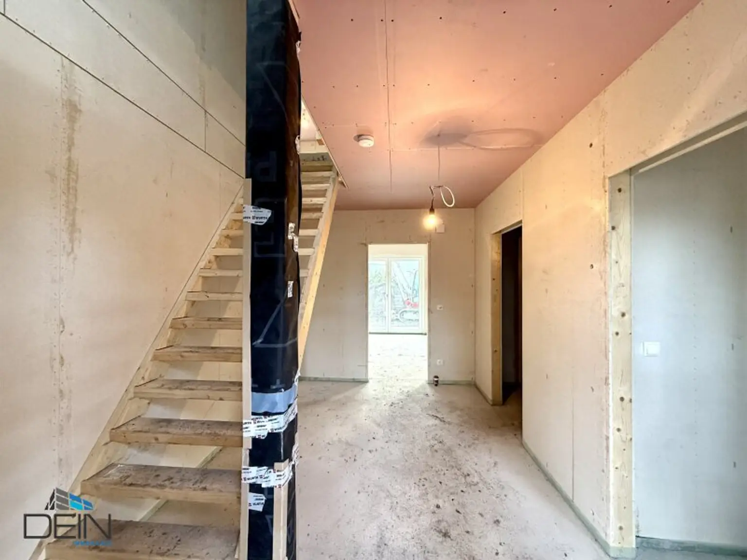 Das Haus ist ein Fertighaus von der Firma Veritas. Die Häuser werden belagsfertig ausgestattet. Die 3-fach verglasten Kunststofffenster verfügen über einen integrierten Sonnenschutz.