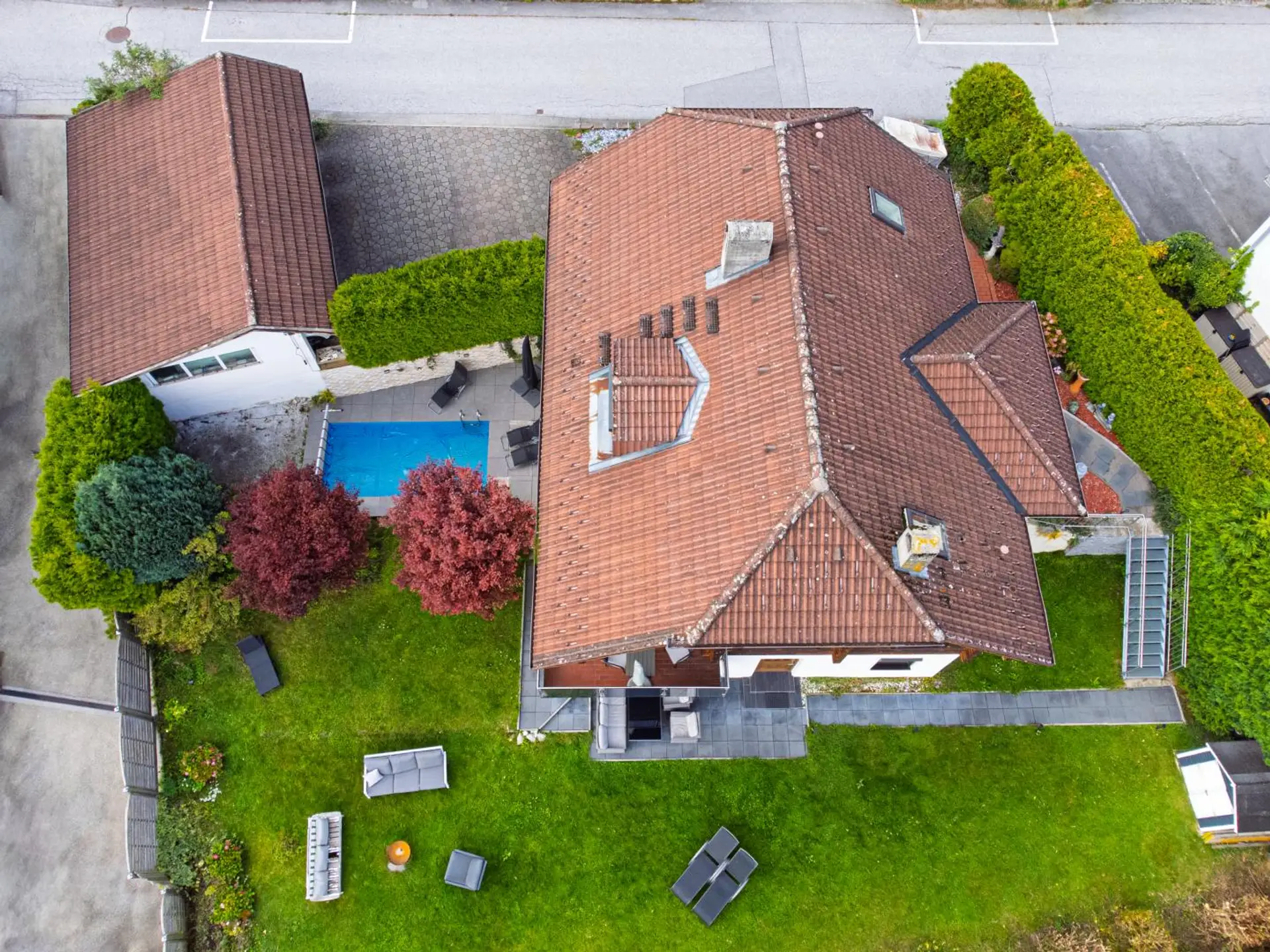 Der uneinsichtige Garten mit Swimmingpool lädt zu entspannten Stunden im Grünen ein, während Carport und großzügige Parkflächen für Komfort und Flexibilität sorgen.