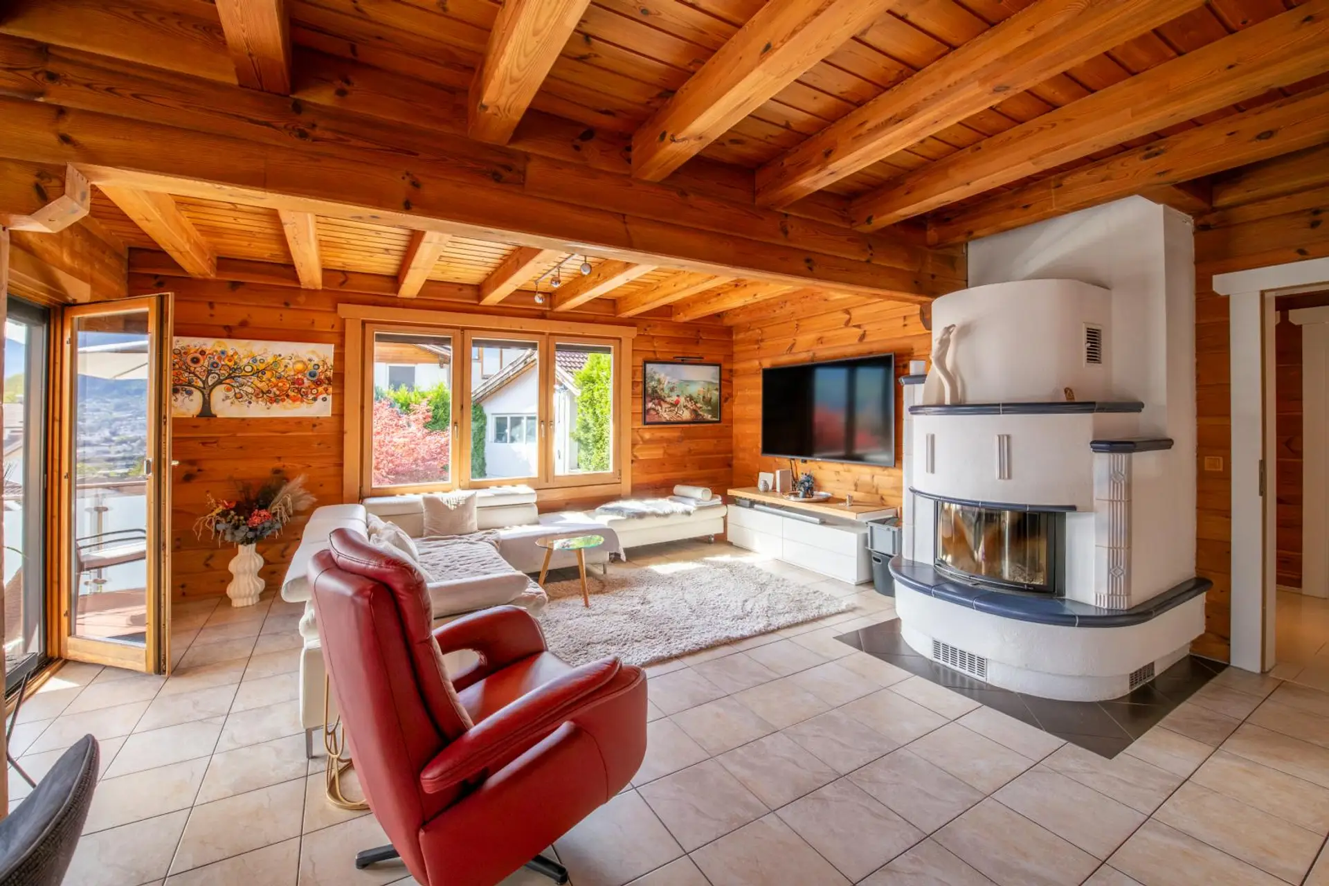Dieses einzigartige Zwei-Familien-Wohnhaus vereint Wohnkomfort, Lebensqualität und Investitionschancen in perfekter Harmonie. Genießen Sie die wunderbare Aussicht und die sonnenverwöhnte Lage, während die offenen, großzügigen Räume viel Platz für individuelle Entfaltung bieten. Der Holzriegelbau im kanadischen Stil schafft ein traumhaftes Raumklima, das durch den Kachelofen im Wohn-Ess-Bereich noch gemütlicher wird - ein Ort, an dem man die Seele baumeln lassen kann.