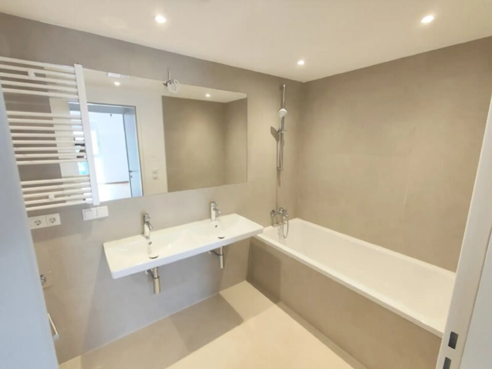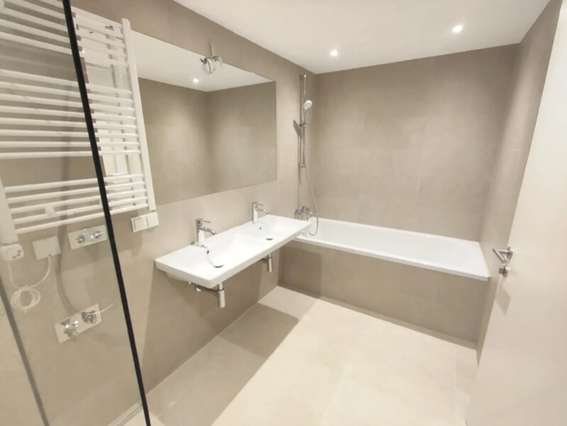 Die Wohnung besticht nicht nur durch ihre Innenausstattung, sondern auch durch die durchdachte Raumaufteilung. Ein modernes Badezimmer mit Doppelwaschtisch, Badewanne und separater Dusche lädt zum Entspannen ein. Das separate WC ist mit einem Handwaschbecken ausgestattet. Und für die sonnigen Tage des Jahres ist die einladende Loggia der perfekte Ort, um die frische Luft zu genießen und die Aussicht über die Stadt zu bewundern. Auch ein praktischer Abstellraum steht zur Verfügung.