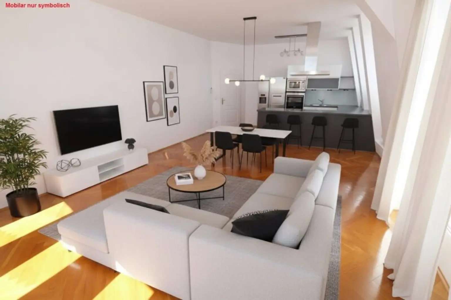 Großzügige Wohnküche mit 33,60 m² mit ausreichend Platz für eine Couchecke UND Eßtischgarnitur.