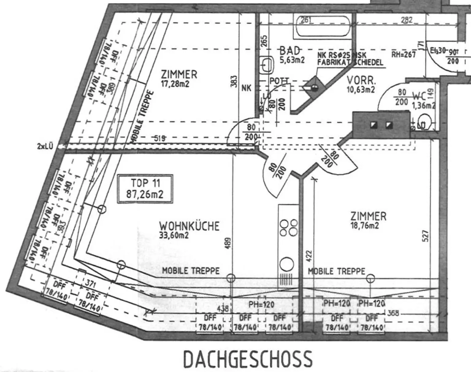 WOHNFLÄCHE 87,26 M² + DACHTERRASSE 62,77 M² (GEWICHTETE FLÄCHE 108 M² = € 3.700/M²)