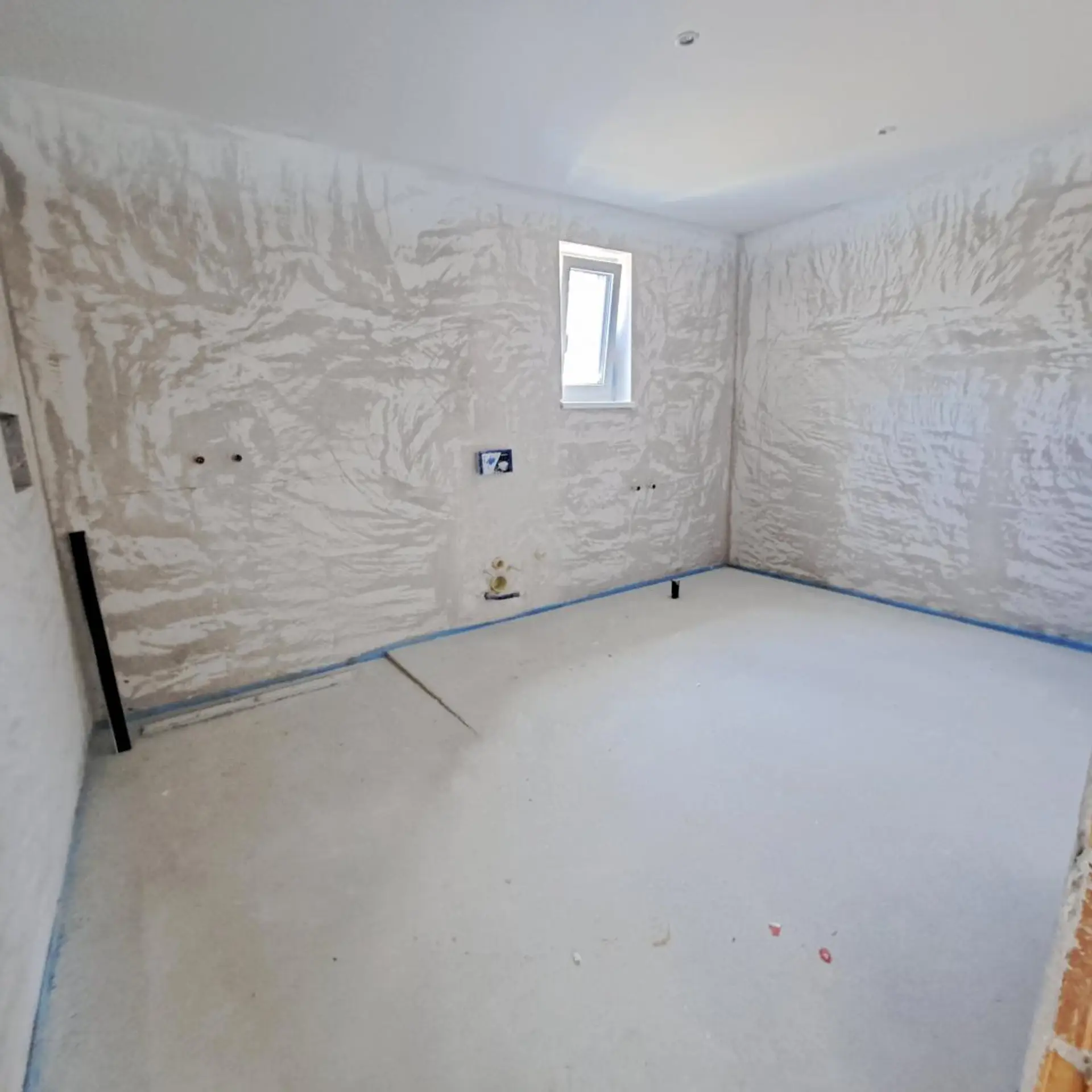 Im vorderen Bereich des Hauses befindet sich ein Zimmer (Büro), ein geräumiger Technikraum und ein WC mit Dusche.