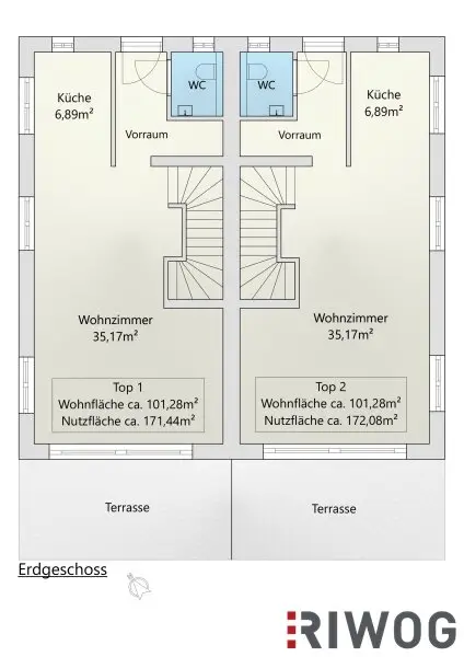 * jede Einheit verfügt über zwei Balkone und eine südseitige Terrasse mit ca. 17,64m²