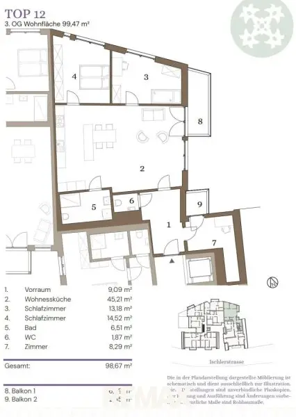 DIE HIER ZUM ANGEGEBENEN KAUFPREIS ANGEBOTENE EINHEIT NIMMT BEZUG AUF EINE WOHNUNGSGRÖSSE VON 45m² WOHNFLÄCHE!