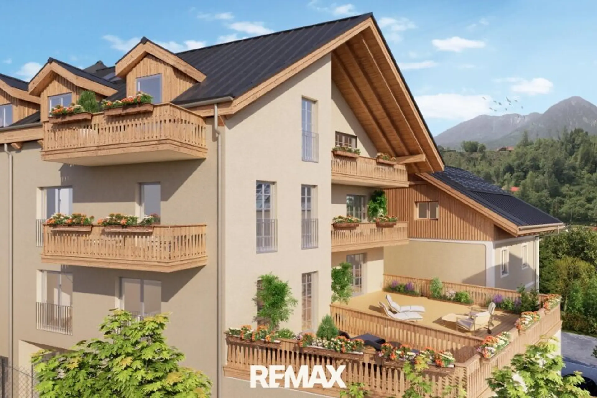 Über RE/MAX Nature in Bad Aussee angeboten werden Neubau-Residenzen mit Größen von 45 bis 170m² im Ortszentrum, mit Terrassen, Balkonen und Garagen,
