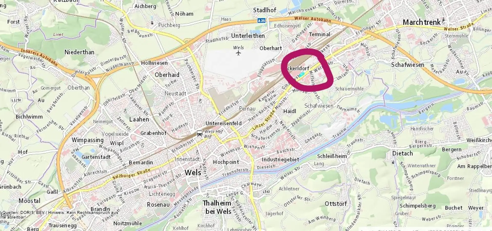 Lage: unmittelbar an der B1 - ca. 2 km zum Knoten Wels-Ost /A 25 (all directions)
