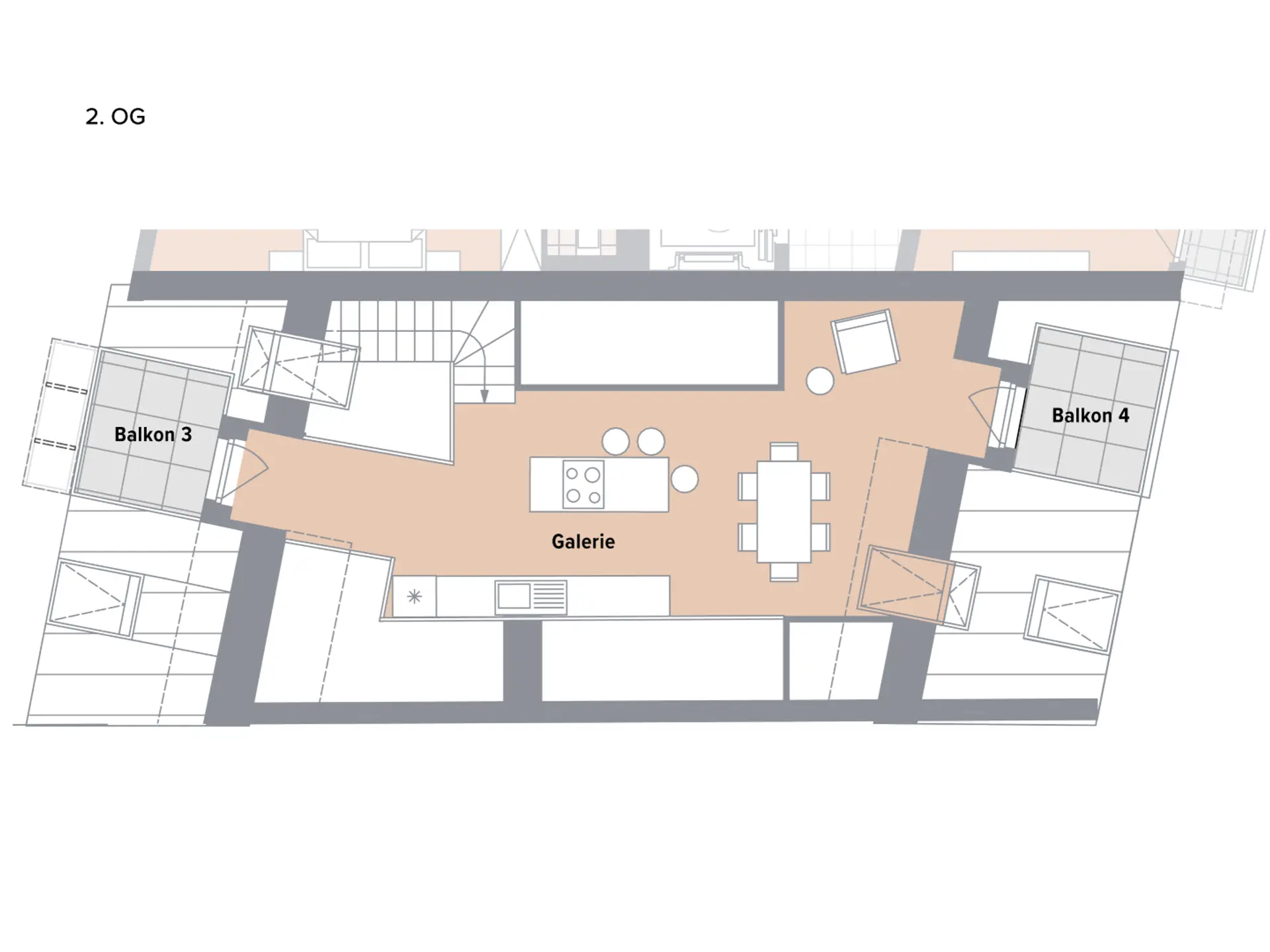 Diese ca. 110,49m² große 4-Zimmerwohnung befindet sich im 1. und 2. Obergeschoss und verfügt über vier Balkonen im Ausmaß von ca. 15,06m². Die attraktive Wohnung bietet eine optimal geplante Wohnfläche mit klarer Raumaufteilung und eignet sich ideal für Paare oder Familien.