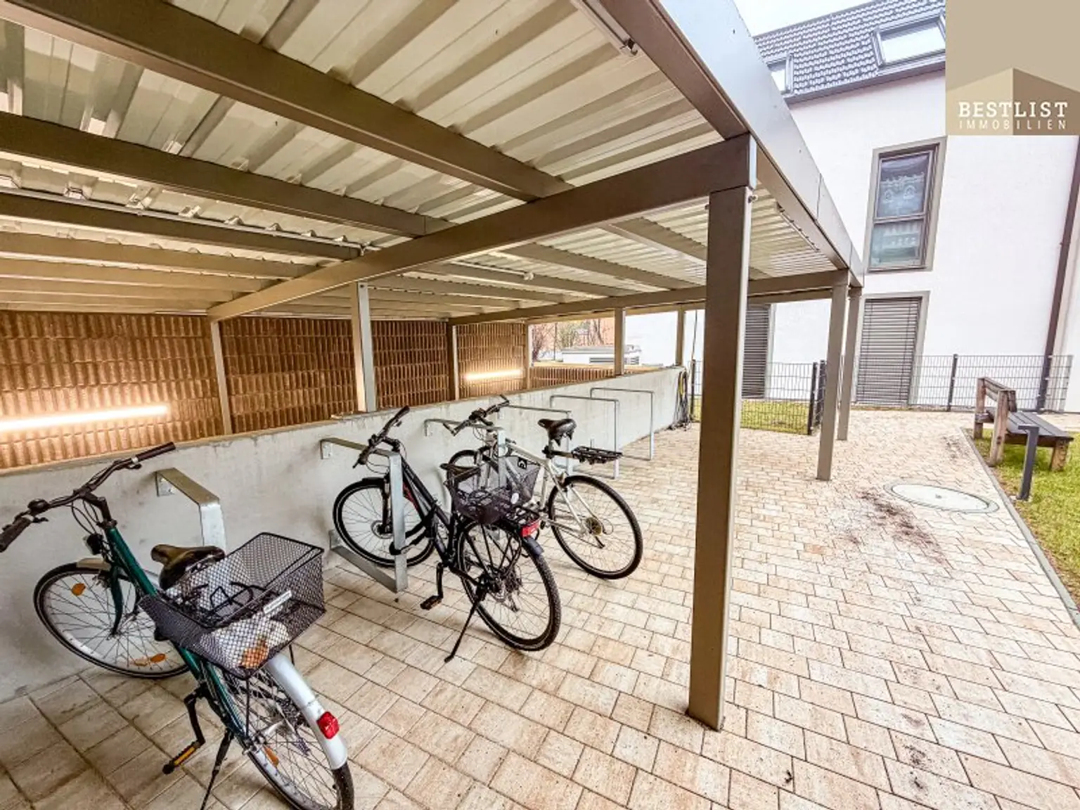 Fahrradabstellraum innen sowie überdacht im Innenhof/Gemeinschaftsgarten