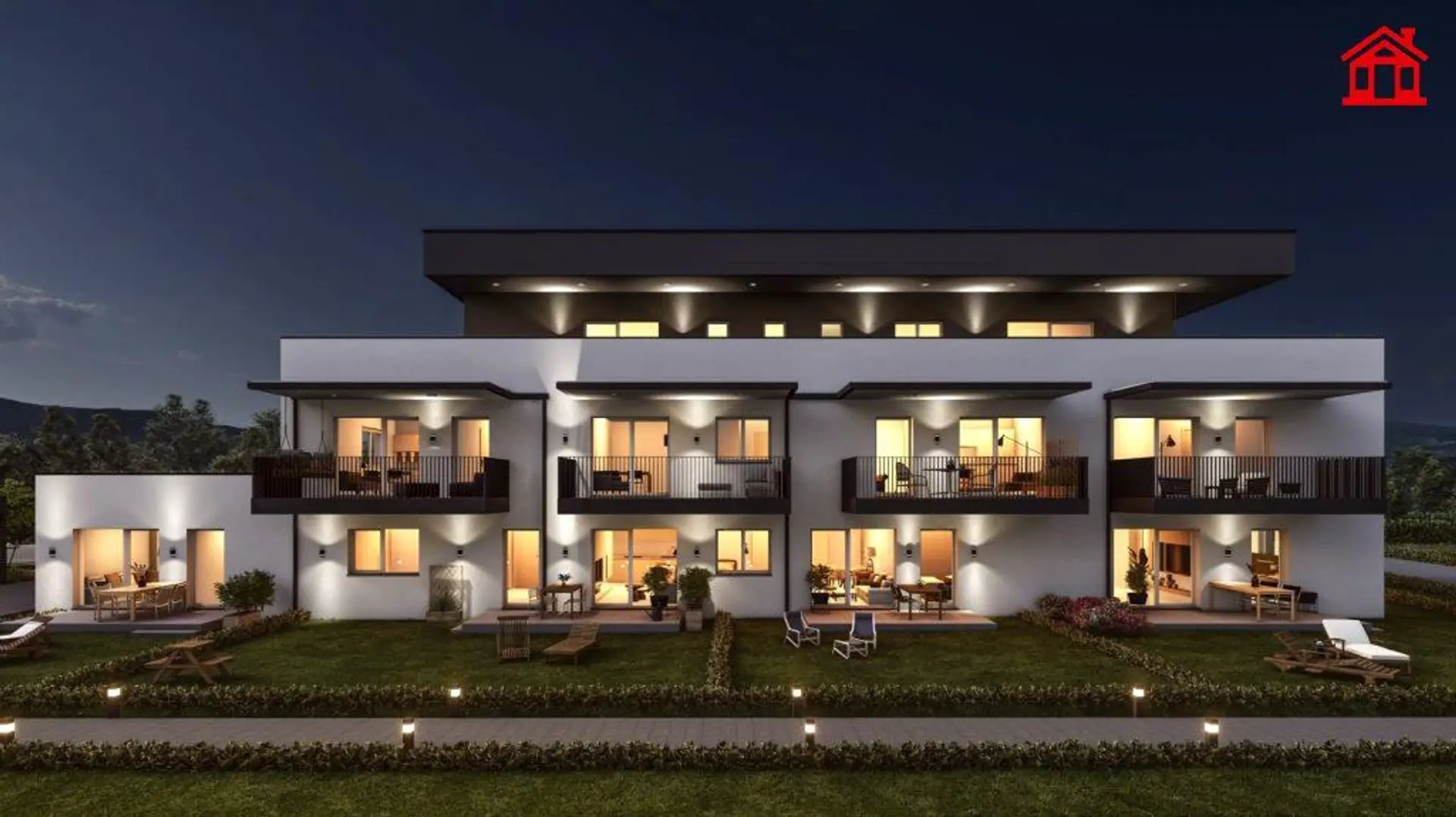 Jeder der beiden Baukörper ist optimal ausgerichtet, um eine helle und freundliche Wohnatmosphäre zu schaffen. Während ein Gebäude 9 Wohneinheiten beherbergt, verfügt das zweite 10 Wohnungen. Trotz der idyllischen Lage ist die Anbindung an den öffentlichen Verkehr optimal: Eine Bushaltestelle befindet sich nur wenige Gehminuten entfernt, während der nächstgelegene Bahnhof mit Zuganbindung in etwa 5 Autominuten erreichbar ist.