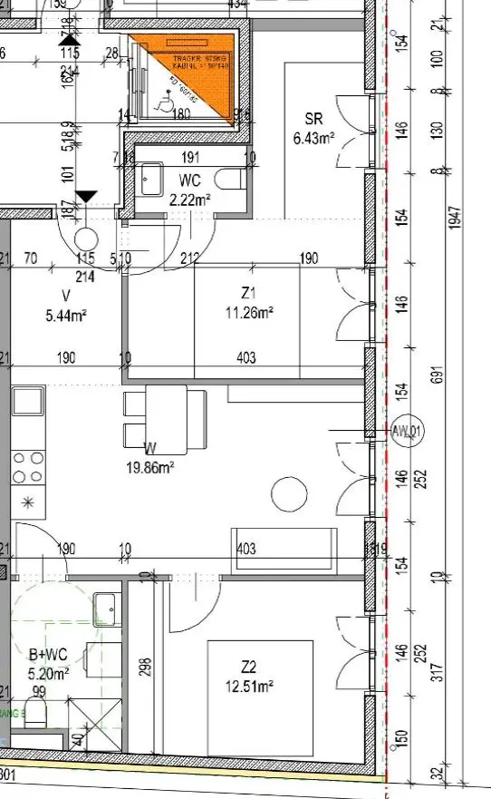 Die Top 10 liegt im 2. Obergeschoss mit Lift, insgesamt ca 65m² Wohnfläche, aufgeteilt in eine Wohnküche, 2 getrennte Zimmer, Sanitärbereich, 2 WC, Schrankraum und einen Vorraum.