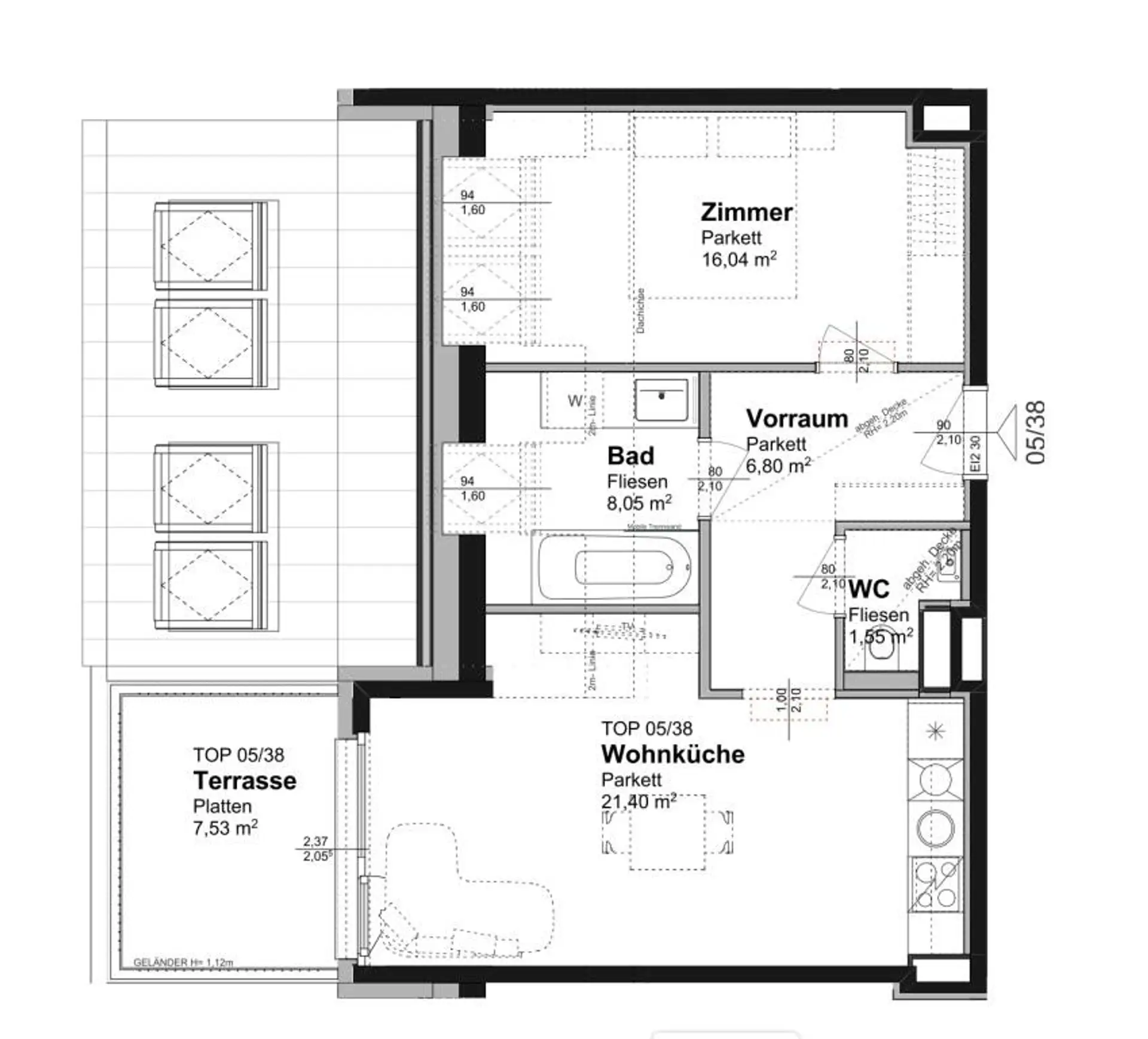 • Bad mit Badewanne inkl. Duschmöglichkeit, Waschtisch, Waschmaschinenanschluss und Handtuchheizkörper