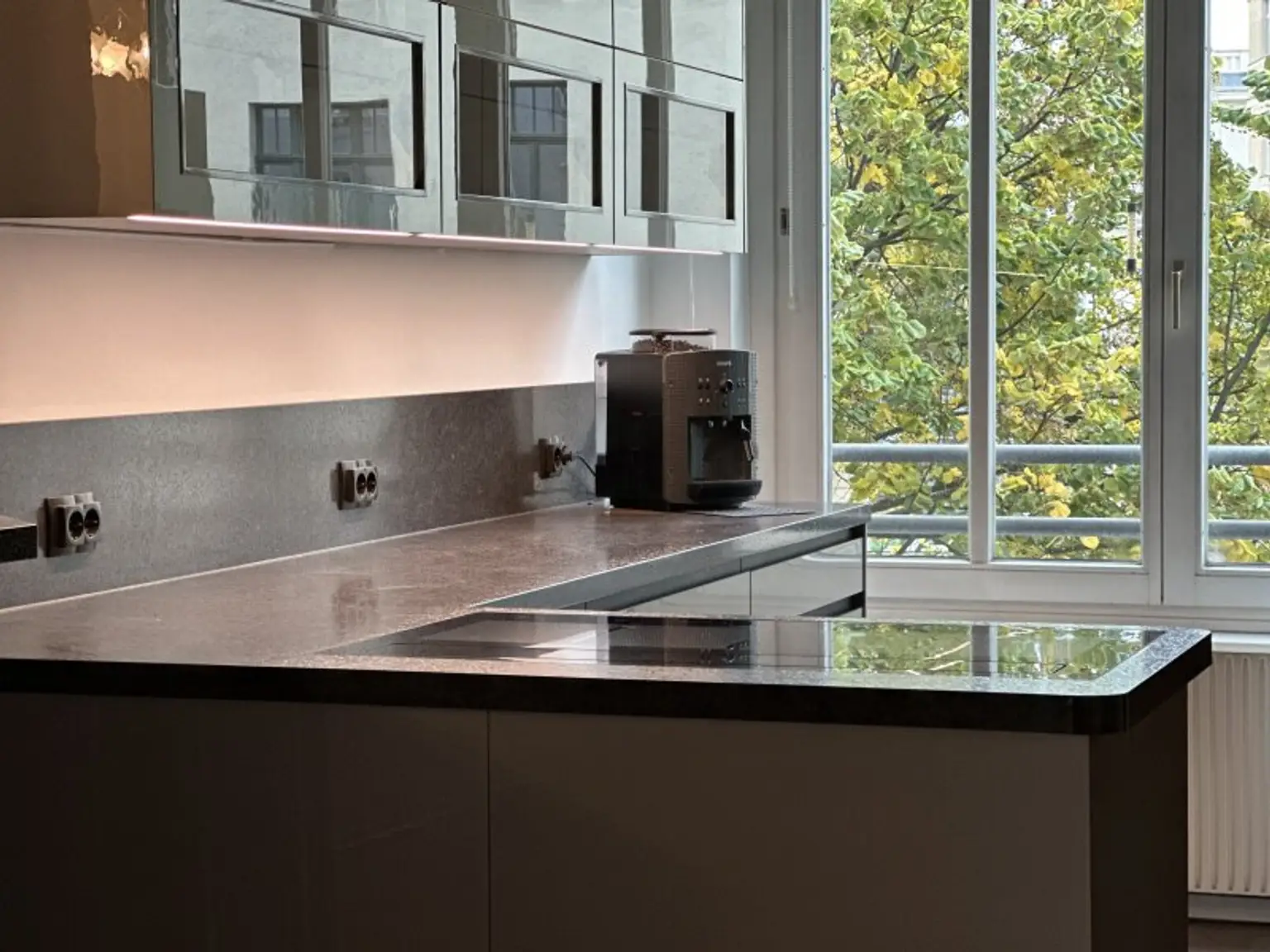 Die Wohnung überzeugt durch ihren lichtdurchfluteten, gut geschnittenen Grundriss und eine hochwertige Ausstattung. Das Herzstück der Immobilie bildet das helle, großzügige Wohnzimmer mit integrierter Showküche, welche offen gestaltet und direkt mit dem Wohnraum verbunden ist. Zusätzlich verfügt die Wohnung über eine zweite, separate Küche, die bei Bedarf durch eine Tür vollständig geschlossen werden kann. Diese zweite Küche kann je nach Wunsch weiterhin als Küche genutzt oder alternativ als zusätzlicher Raum – beispielsweise als Schlafzimmer, Kinderzimmer oder Büro – als 5. Zimmer verwendet werden.