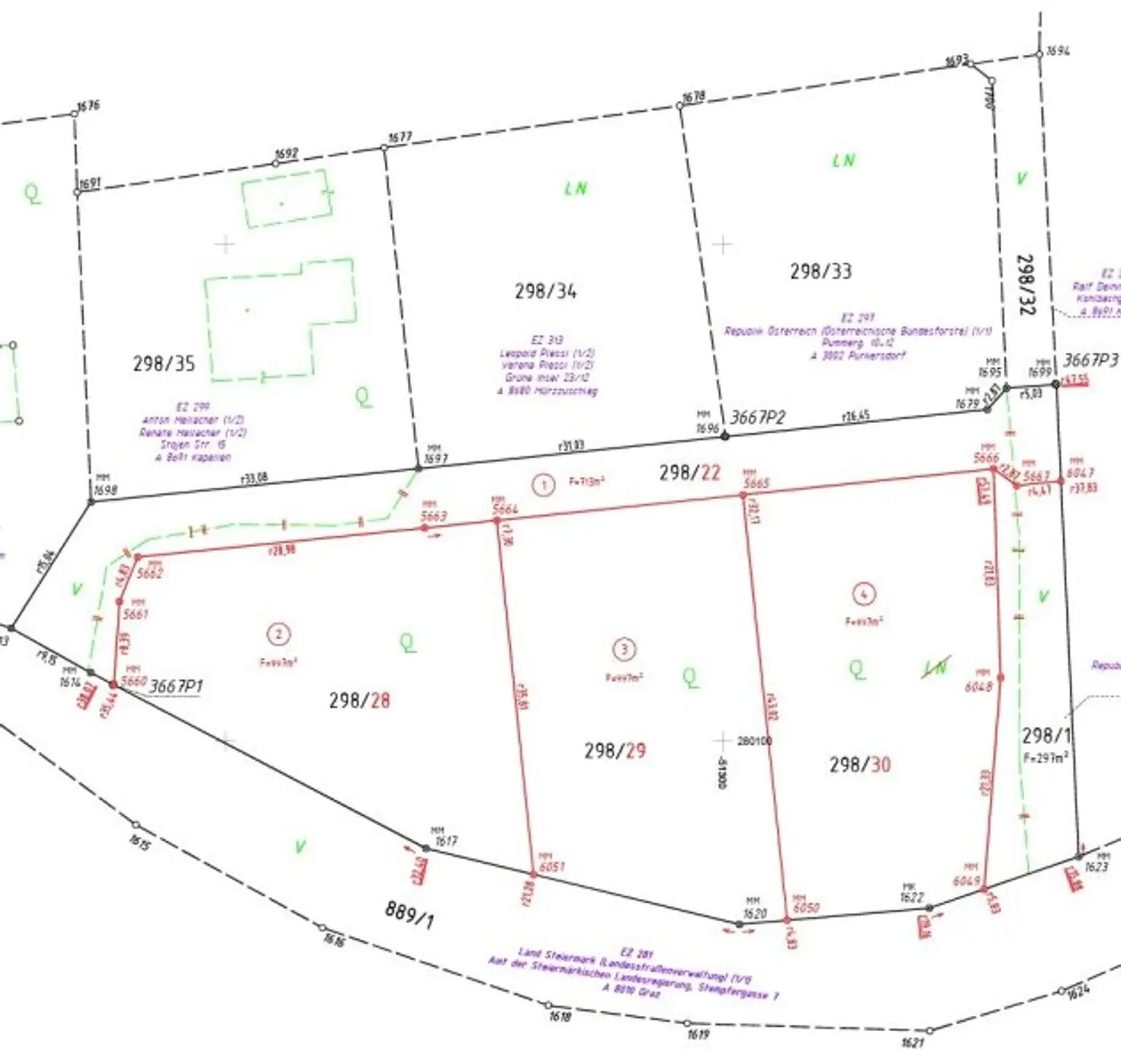 - 3,5 % Grunderwerbssteuer: EUR 1.194,- (für Grundstück 298/28 und 298/29) oder EUR 1.550,- (für Grundstück 298/30) und EUR 1.225,- (für Grundstück 298/33)