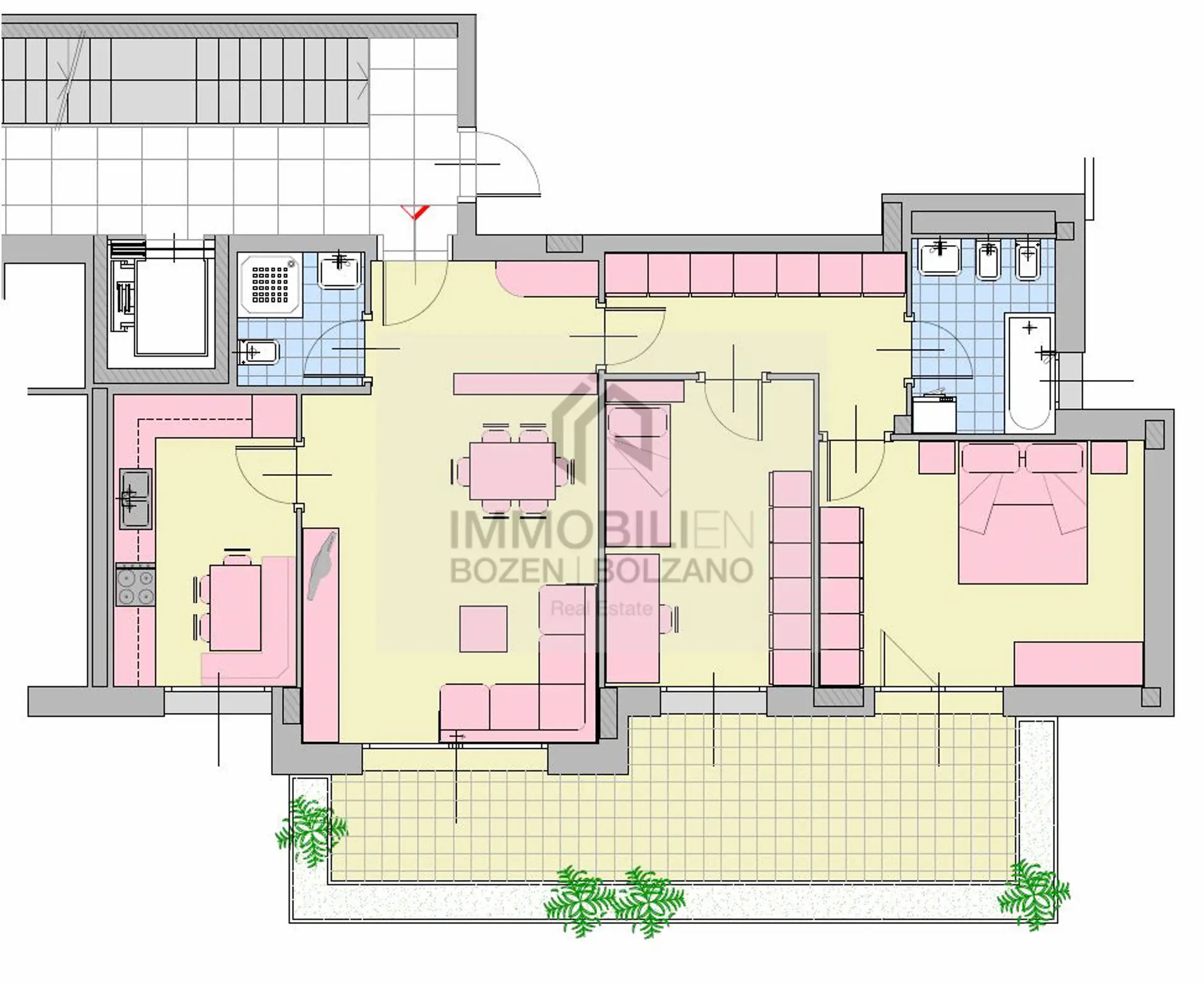 Sehr schöne und neue 3-Zimmerwohnung im Zentrum von Bozen zu verkaufen. Die Wohnung befindet sich im 6. Stock eines Gebäudes, mit der Energieklasse „A“ und hat eine Fläche von ca. 113,65 m². Sie ist nach Süden ausgerichtet und besteht aus Eingangsbereich mit Flur, Wohnzimmer, Küche, 2 Schlafzimmer, 2 Badezimmer und Terrasse. Keller ist im Preis inbegriffen.