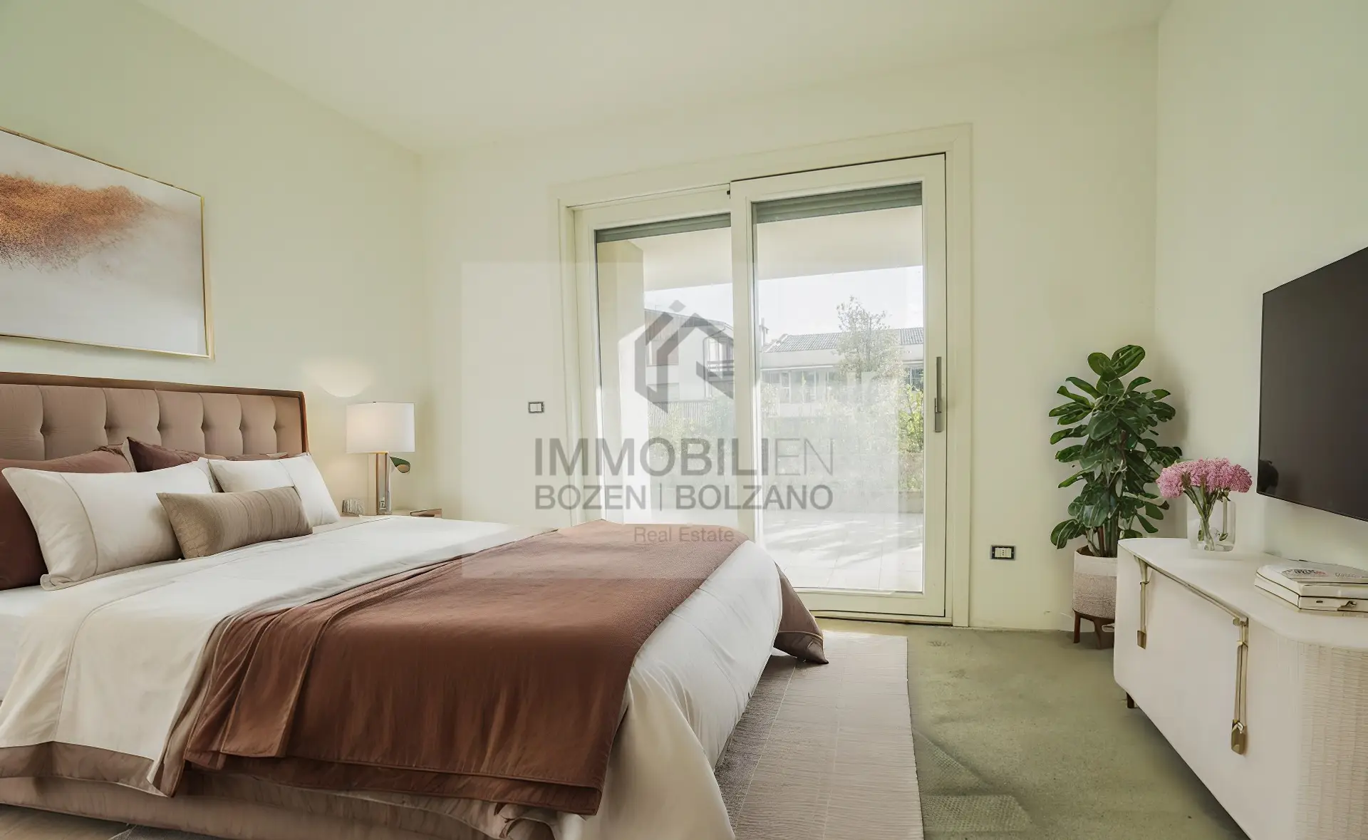 Neubau 3-Zimmerwohnung mit Garten in zentraler Lage in Leifers zu verkaufen. Die Wohnung befindet sich im Erdgeschoss eines Gebäudes, mit der Energieklasse „A“ und hat eine Fläche von ca. 113,00 m². Sie besteht aus einem Eingangsbereich, Wohnzimmer mit Kochecke, zwei Schlafzimmer, ein Bad und einen schönen Garten. Keller ist im Preis inbegriffen. Garage extra verfügbar.