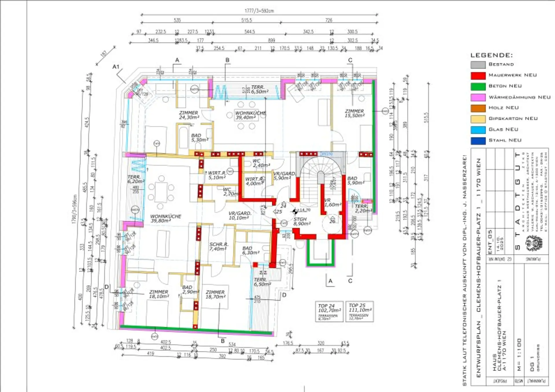 Es werden gesamt 3 Dachgeschoß-Wohnungen errichtet: Bei Bedarf können auch 2 oder alle 3 DG-Wohnungen zusammen als 1 Objekt erworben werden.