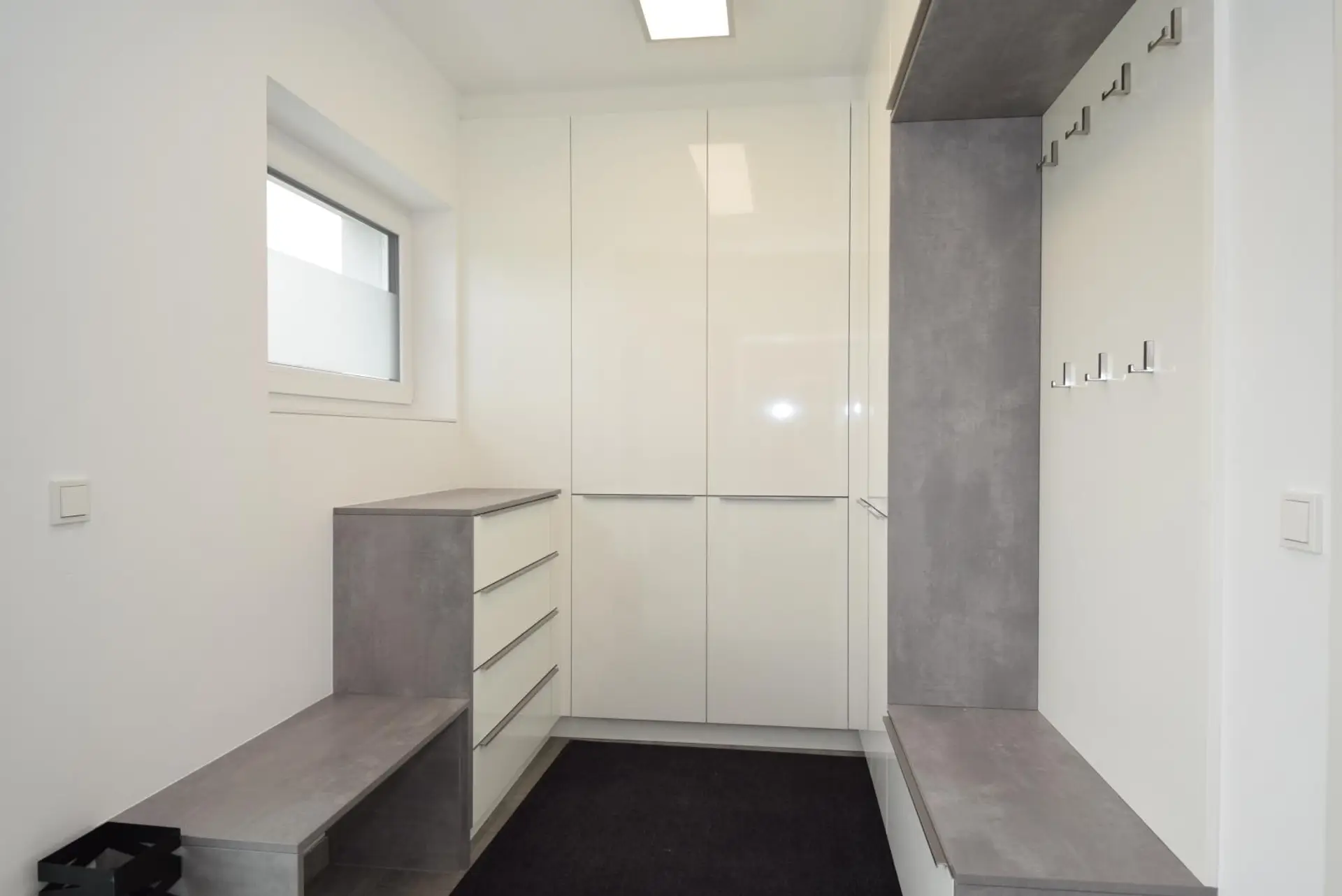 * Raumaufteilung Erdgeschoß: Vorraum, Waschraum – mit Duschanschluss, großzügige Wohnküche mit Zugang auf die Terrasse, WC, Abstellraum
