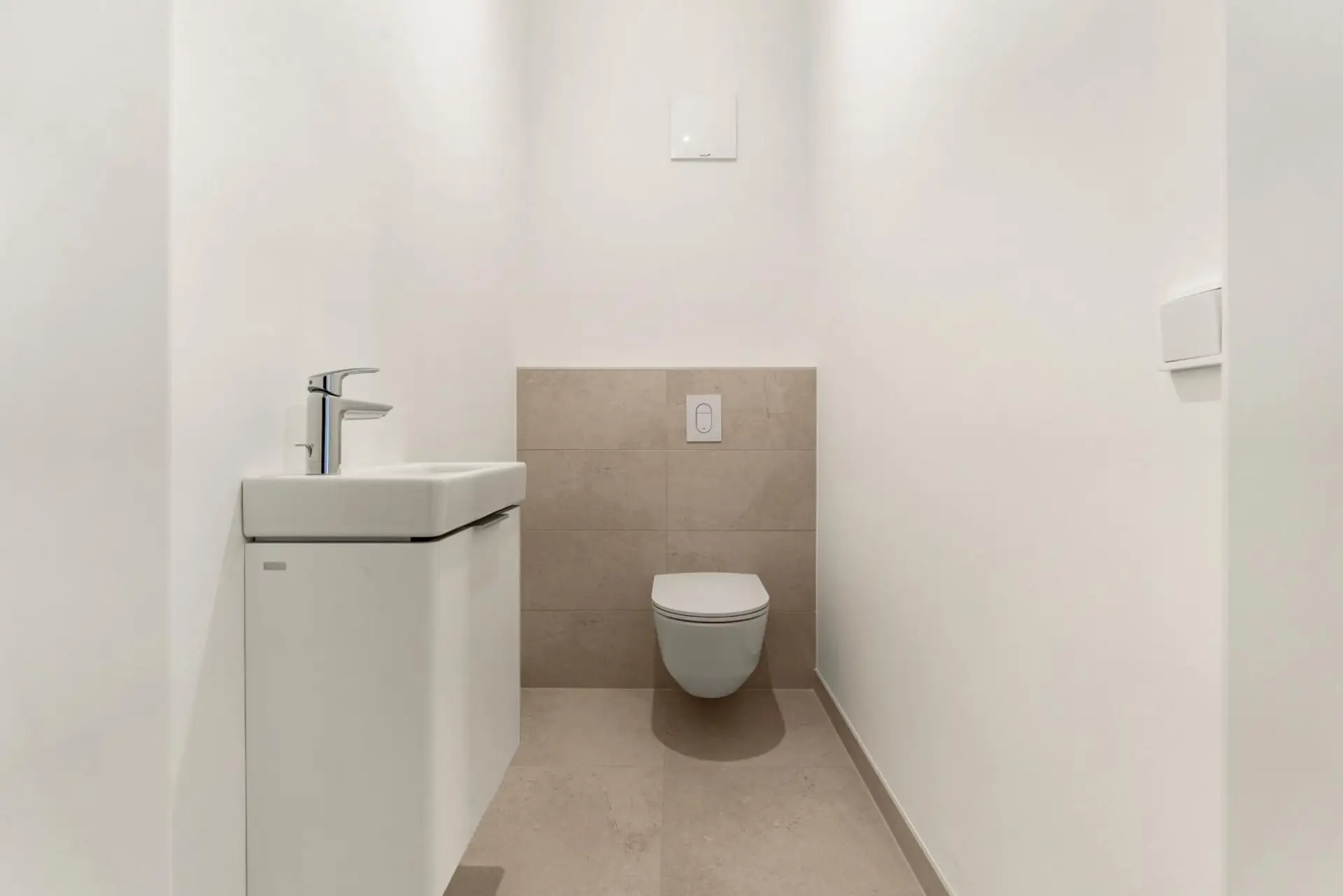Die hochwertigen Böden aus Eichen-Parkett und Fliesen verleihen der Wohnung ein modernes und stilvolles Ambiente. Die Fenster sind mit automatischen Rollläden ausgestattet. Beheizt wird die Immobilie mittels Fußbodenheizung. Zur Kühlung an heißen Sommertagen wurde eine Bauteilaktivierung eingebaut, eine umweltfreundliche Alternative zu herkömmlichen Klimaanlagen. Glasfaseranschluss ist verfügbar.