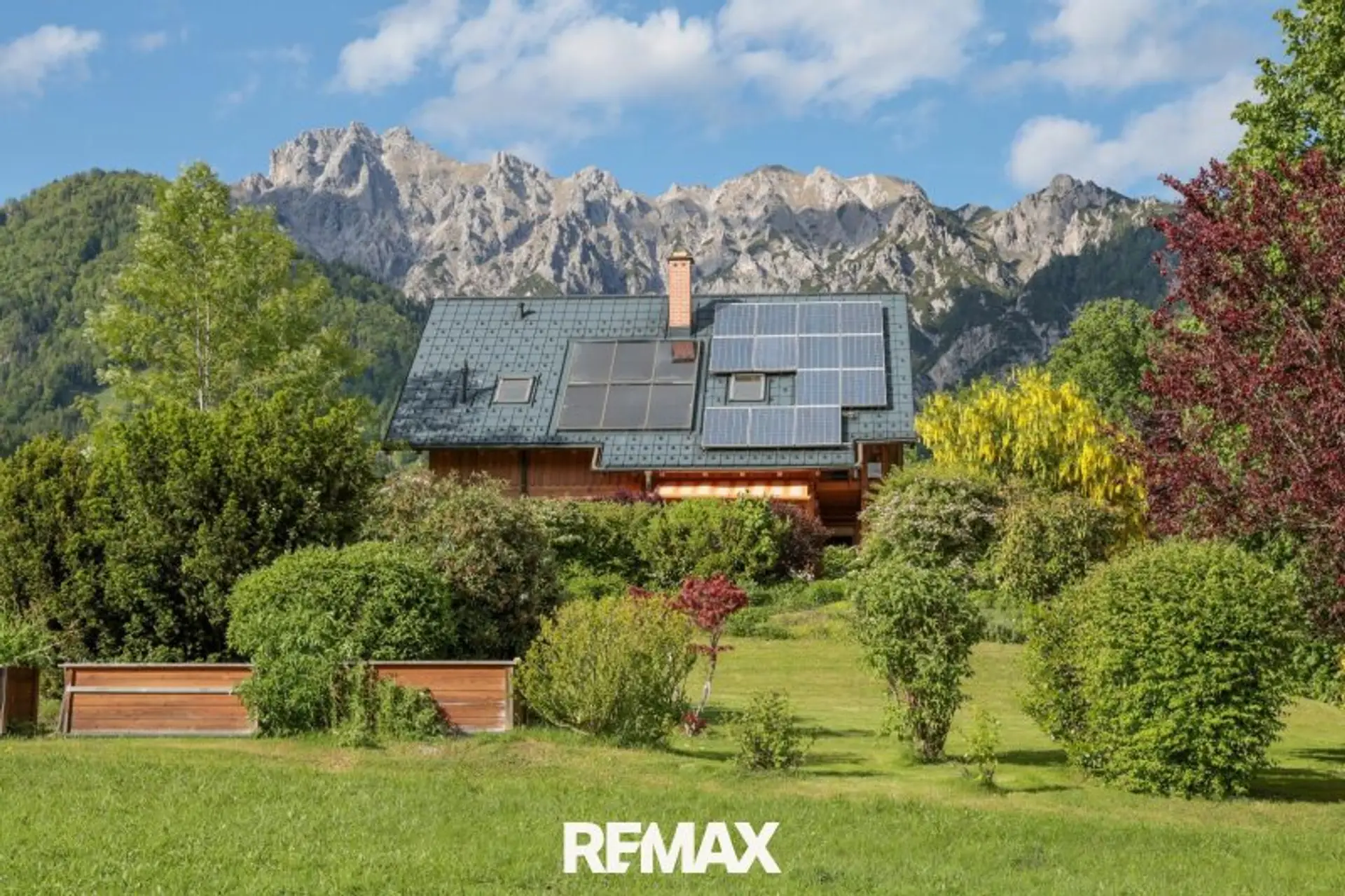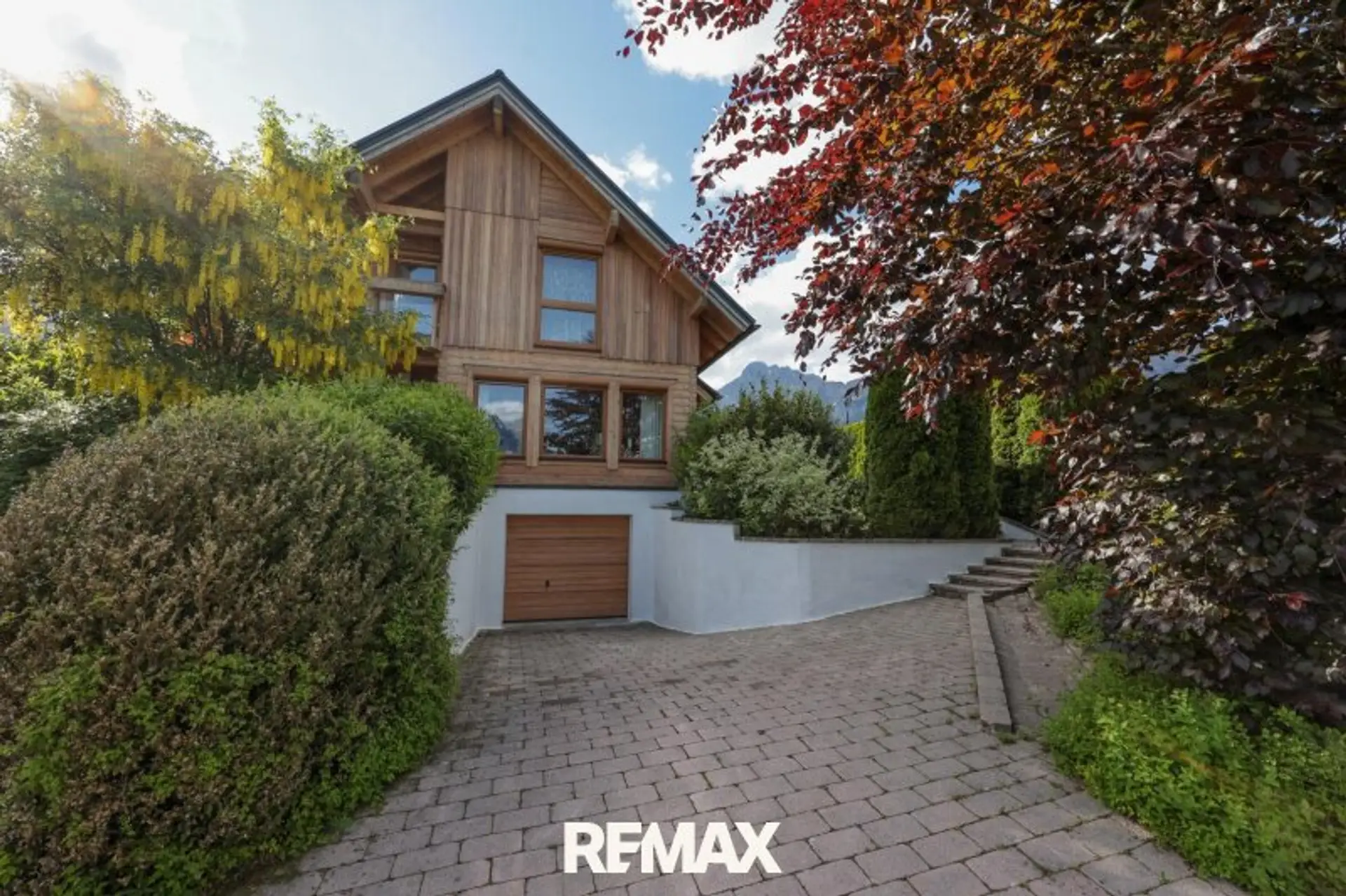Die Fassade wurde 2018 professionell geschliffen und mit einem hochwertigen Öl behandelt – so präsentiert sich das Haus in einem sehr gepflegten Zustand.