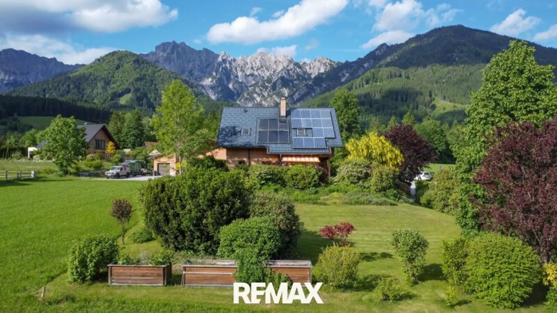 300 Liter Warmwasserboiler, Solarzellen am Dach sowie eine Photovoltaik-Anlage.