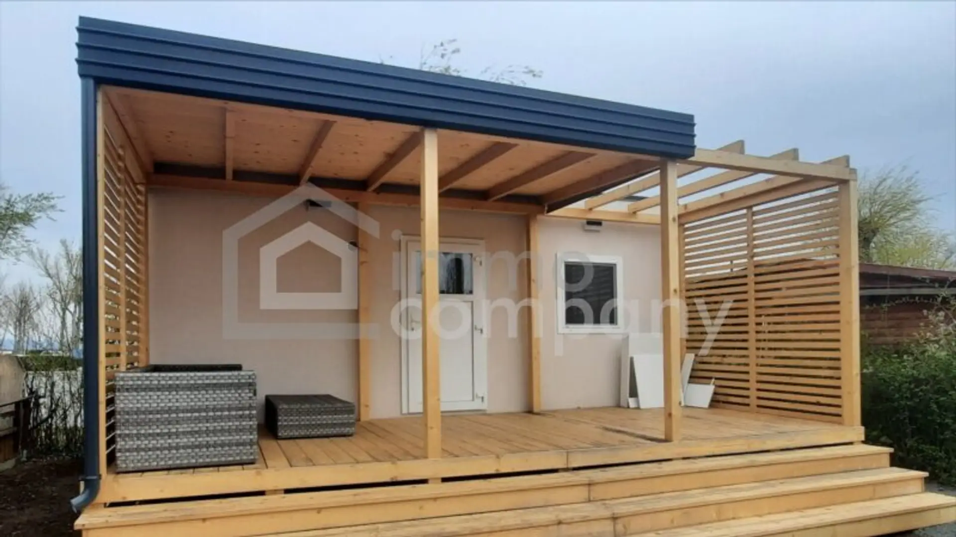 Das neue Mobilheim verfügt über - 1 Schlafzimmer - Wohnküche - Bad mit WC und Dusche. - neue Klimaanlage.